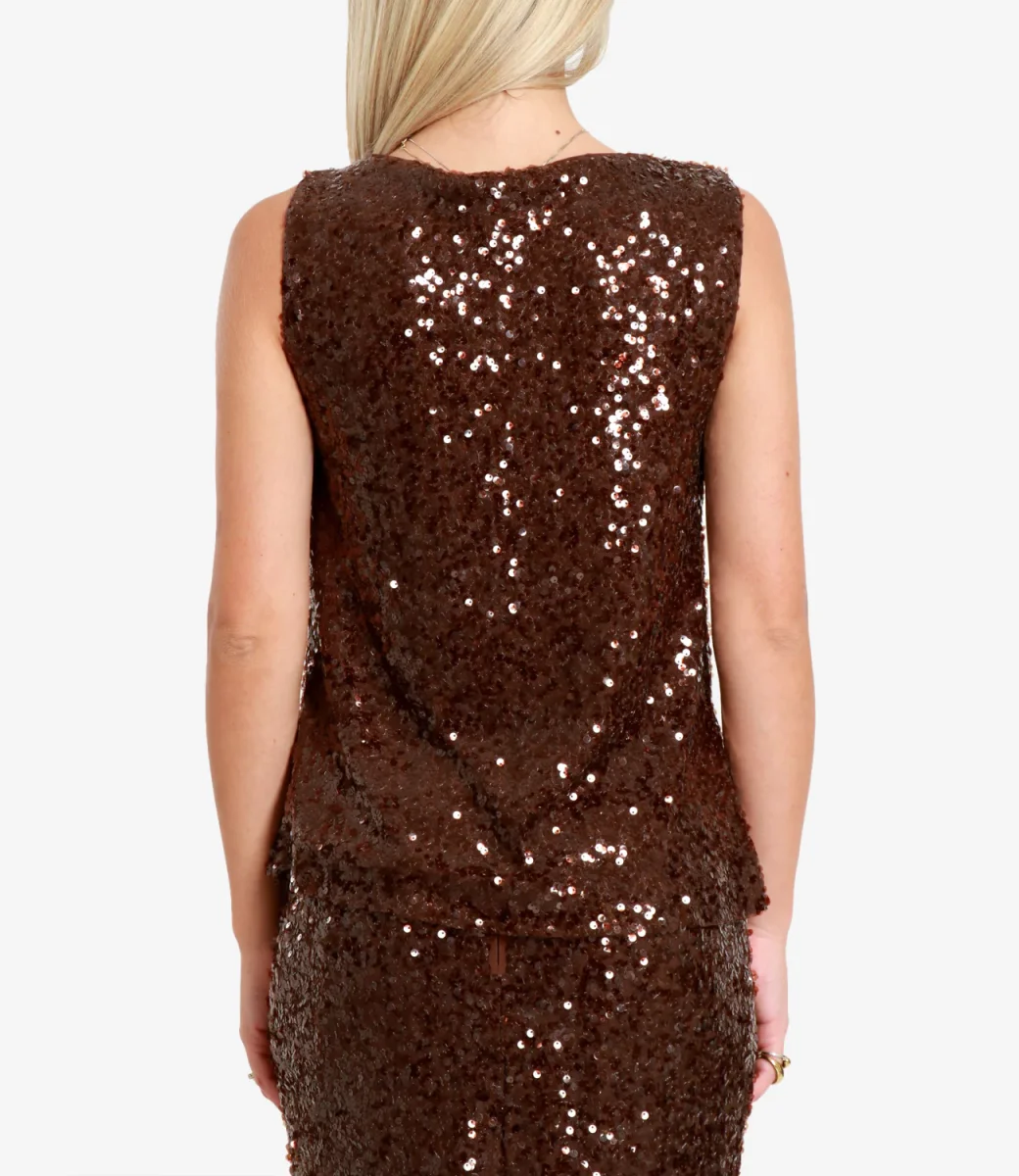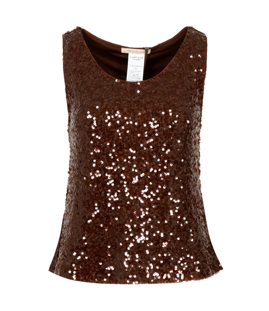 Top Pennyblack Semisse in tulle jersey stretch con paillettes ricamate all-over: linee che sfiorano il corpo, scollo tondo e fodera in jersey liscio. Dalla capsule Glitz ‘n Glam con Pupa Milano; coordinabile alla gonna in collezione e alla linea make-up.