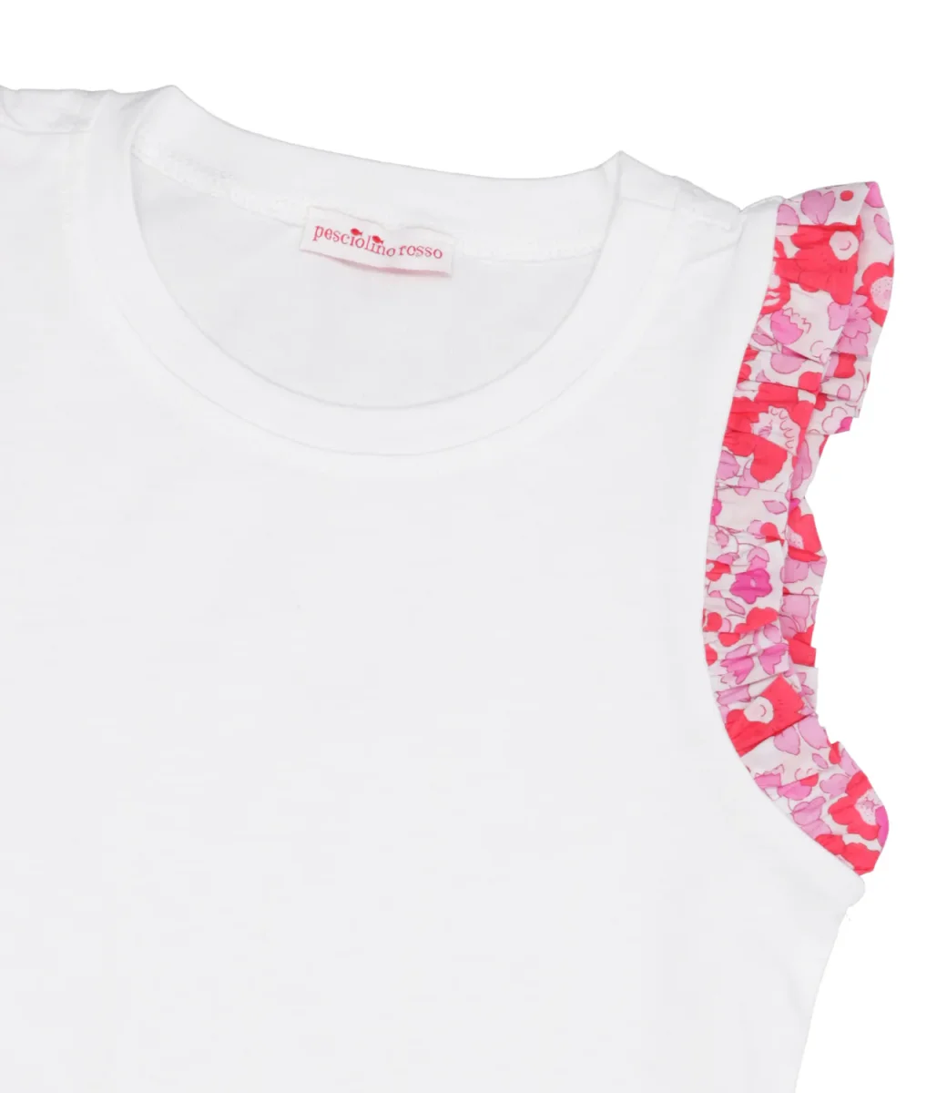 T-shirt Pesciolino Rosso Kids Beachwear in cotone con rouche a fantasia.