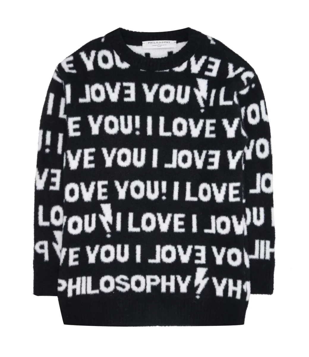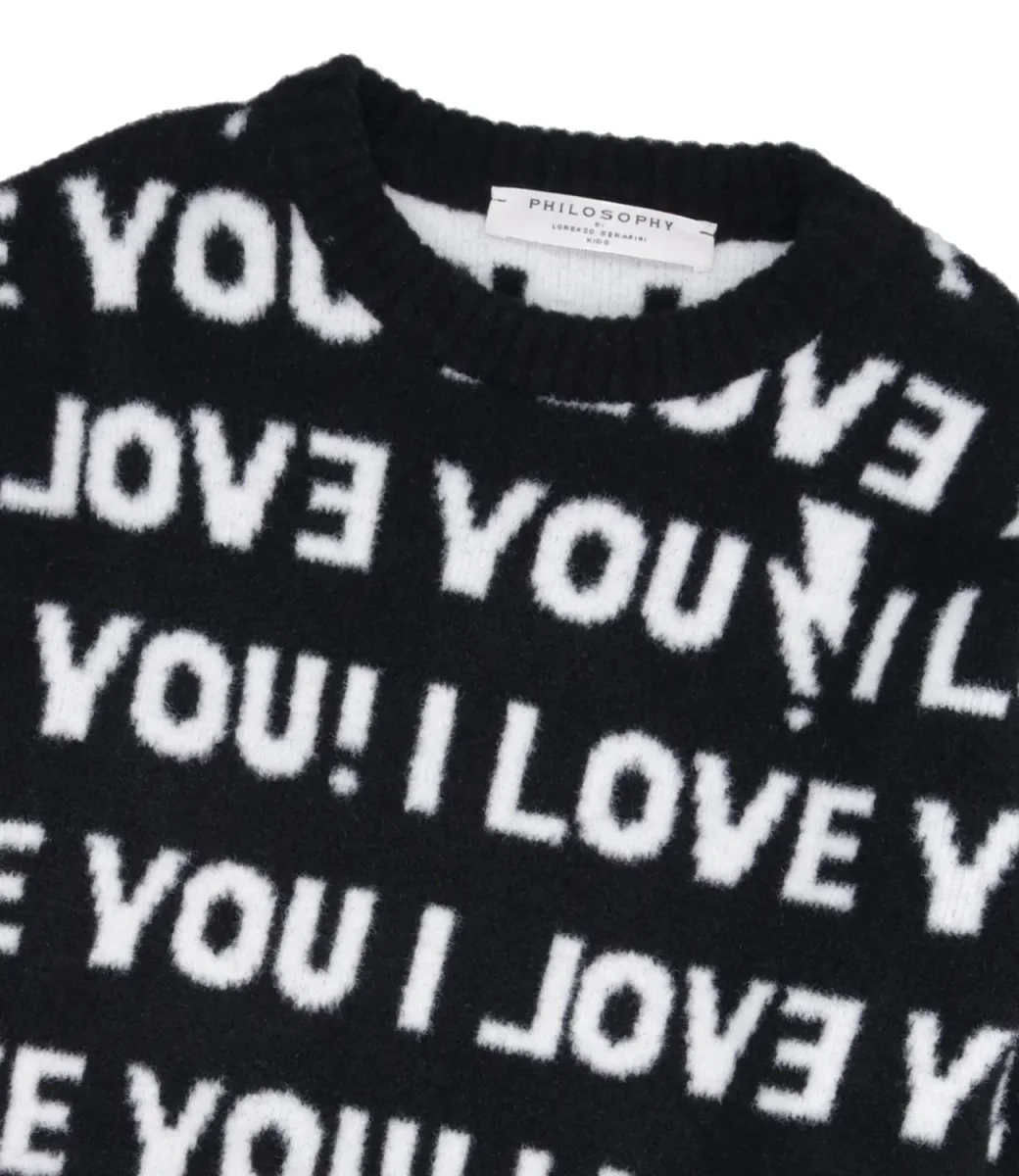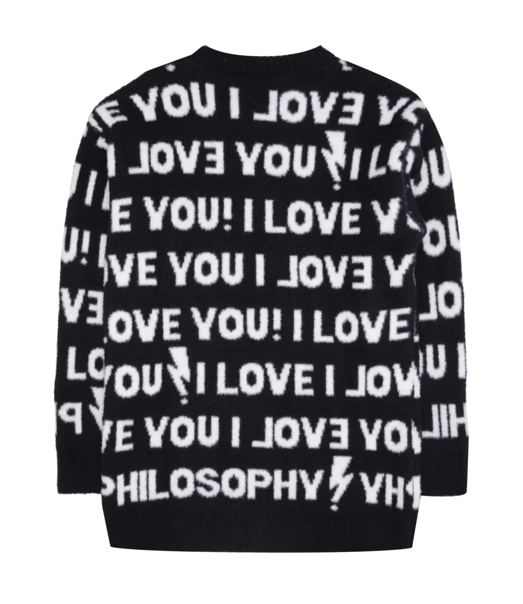 Maglia Philosophy by Lorenzo Serafini Kids Nera a girocollo con motivo, maniche lunghe, orlo e polsini elastici.