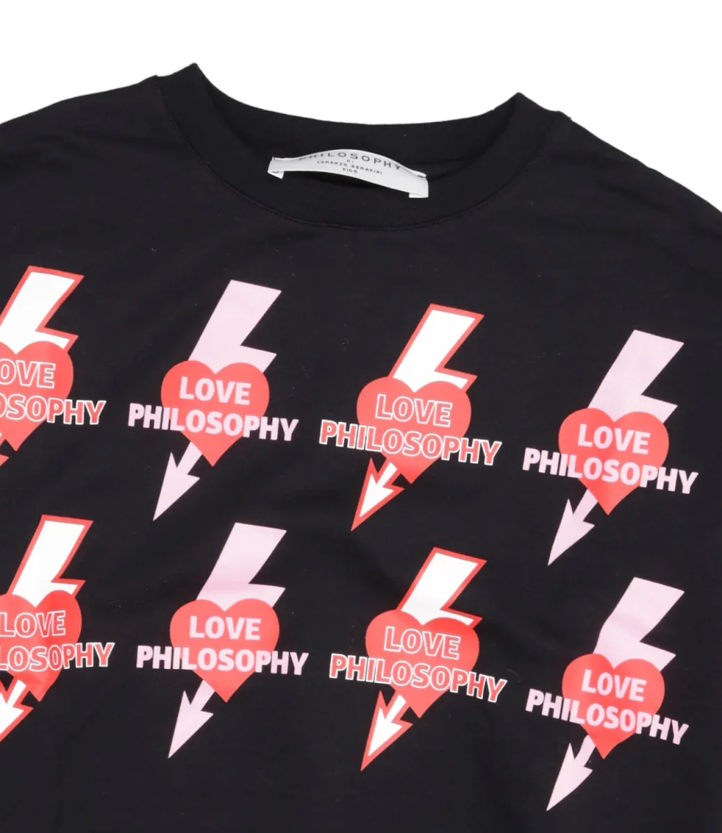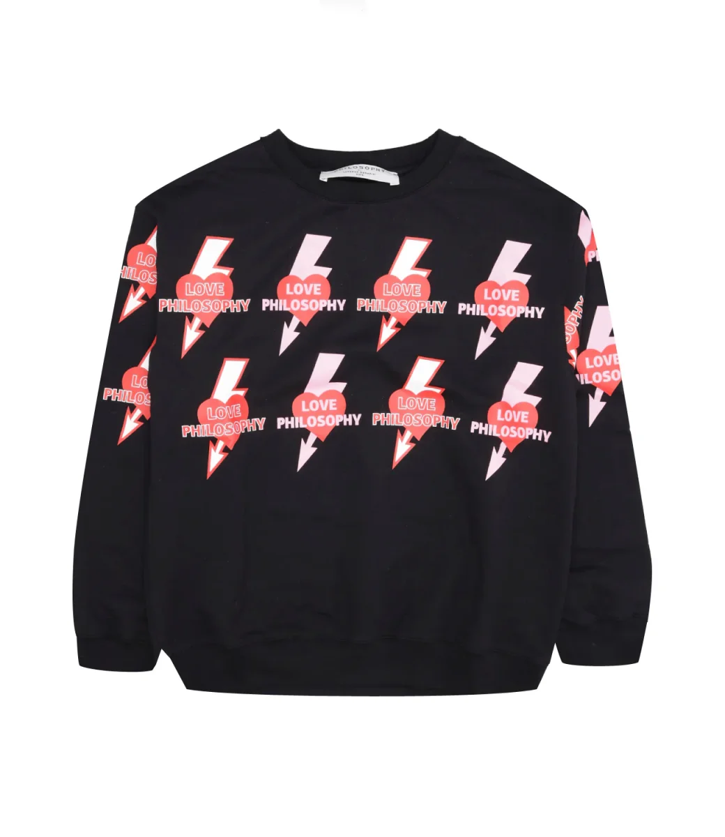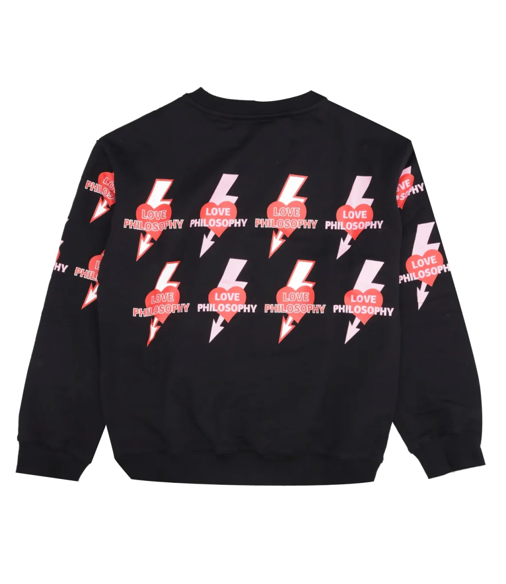 Felpa Philosophy di Lorenzo Serafini Kids in cotone nero a girocollo con maniche lunghe, stampa con logo frontale, laterale e posteriore, orlo e polsini elastici.