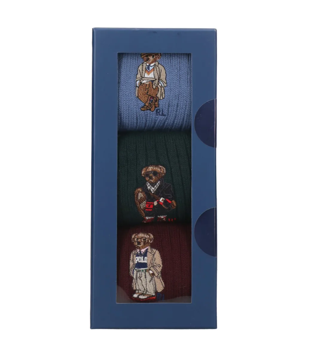 Calzini Polo Ralph Lauren Sock-3 pack in misto cotone, motivo tinta unita a coste con maxi Polo Bear sul laterale lavorato a maglia, con tallone preformato.
