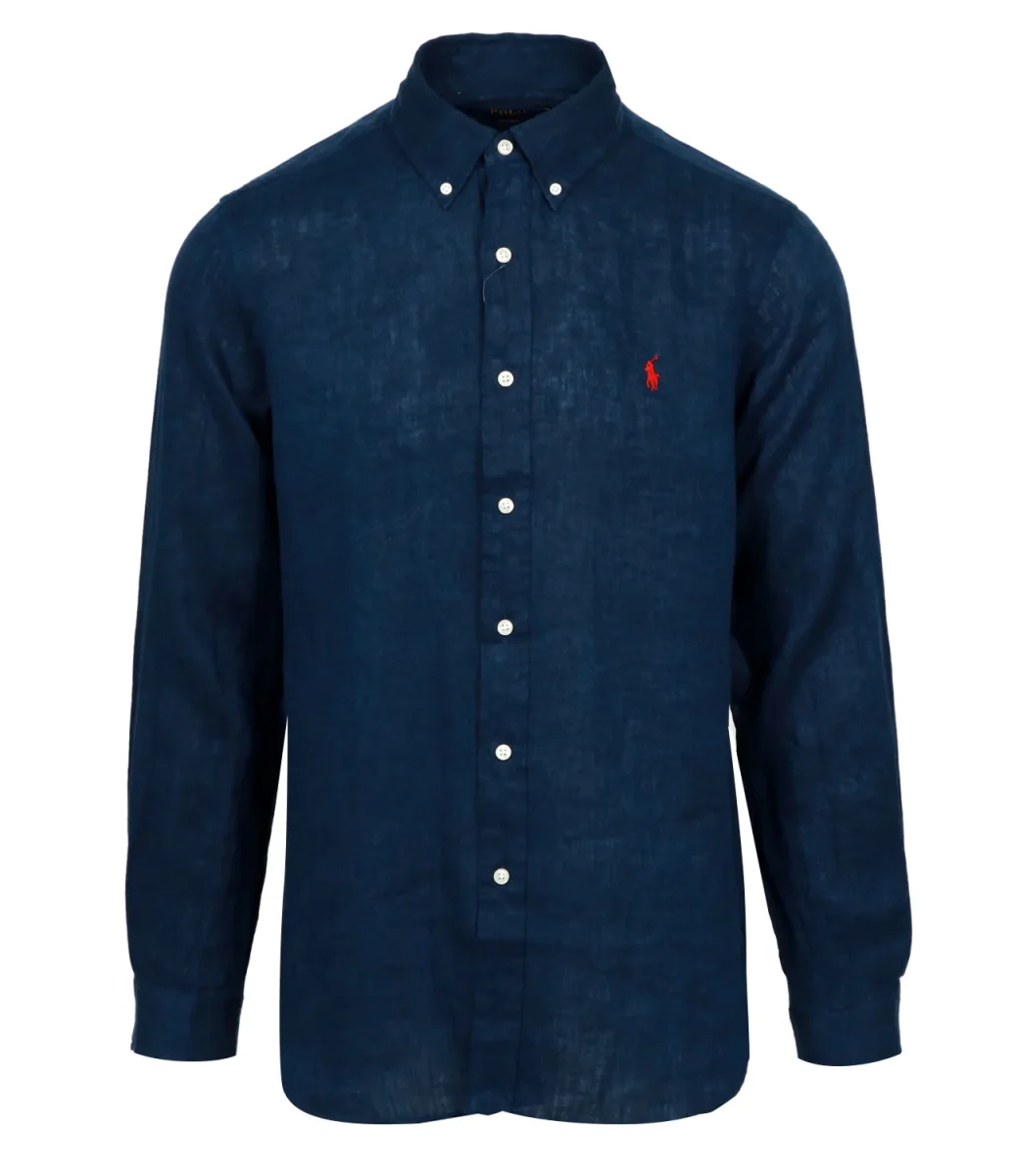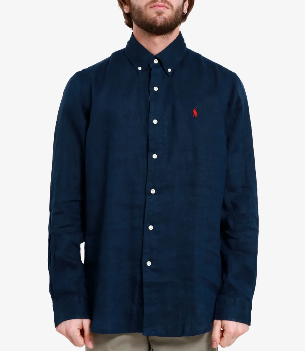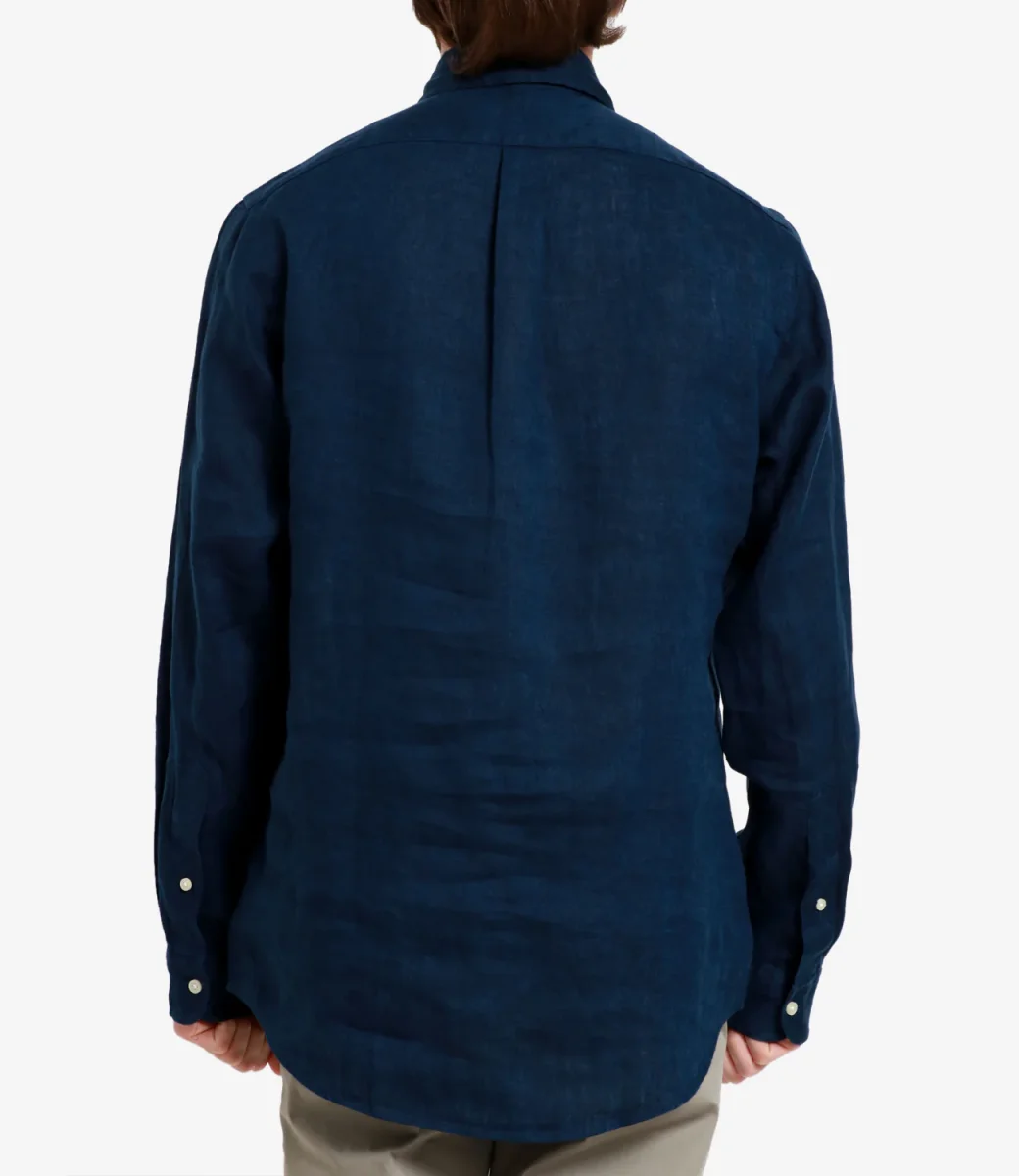Camicia Polo Ralph Lauren in lino, collo a punta button-down, cannoncino con bottoni, maniche lunghe con polsini con bottoni, carré posteriore diviso con pieghe. Esclusivo pony ricamato sul lato sinistro del torace.