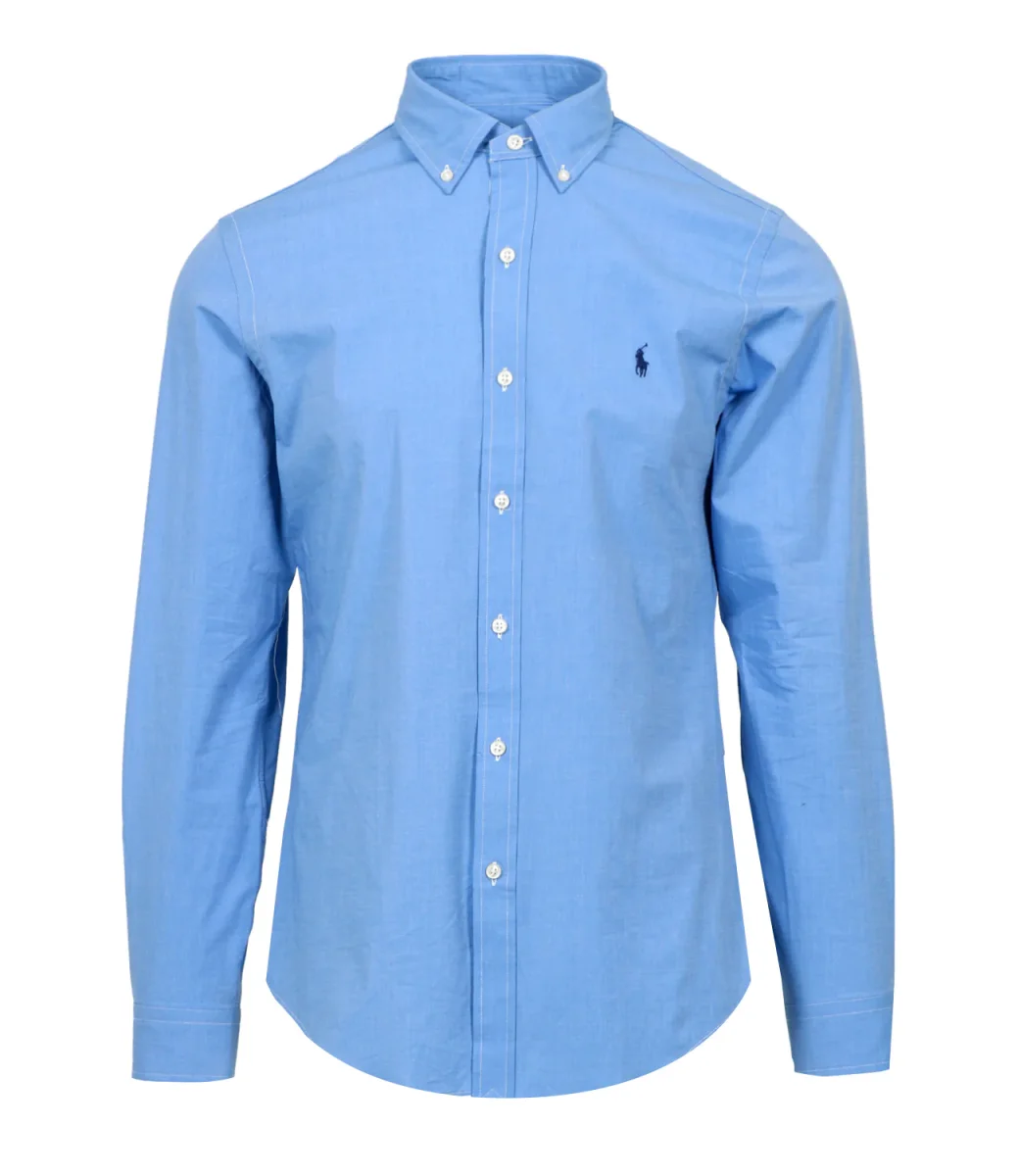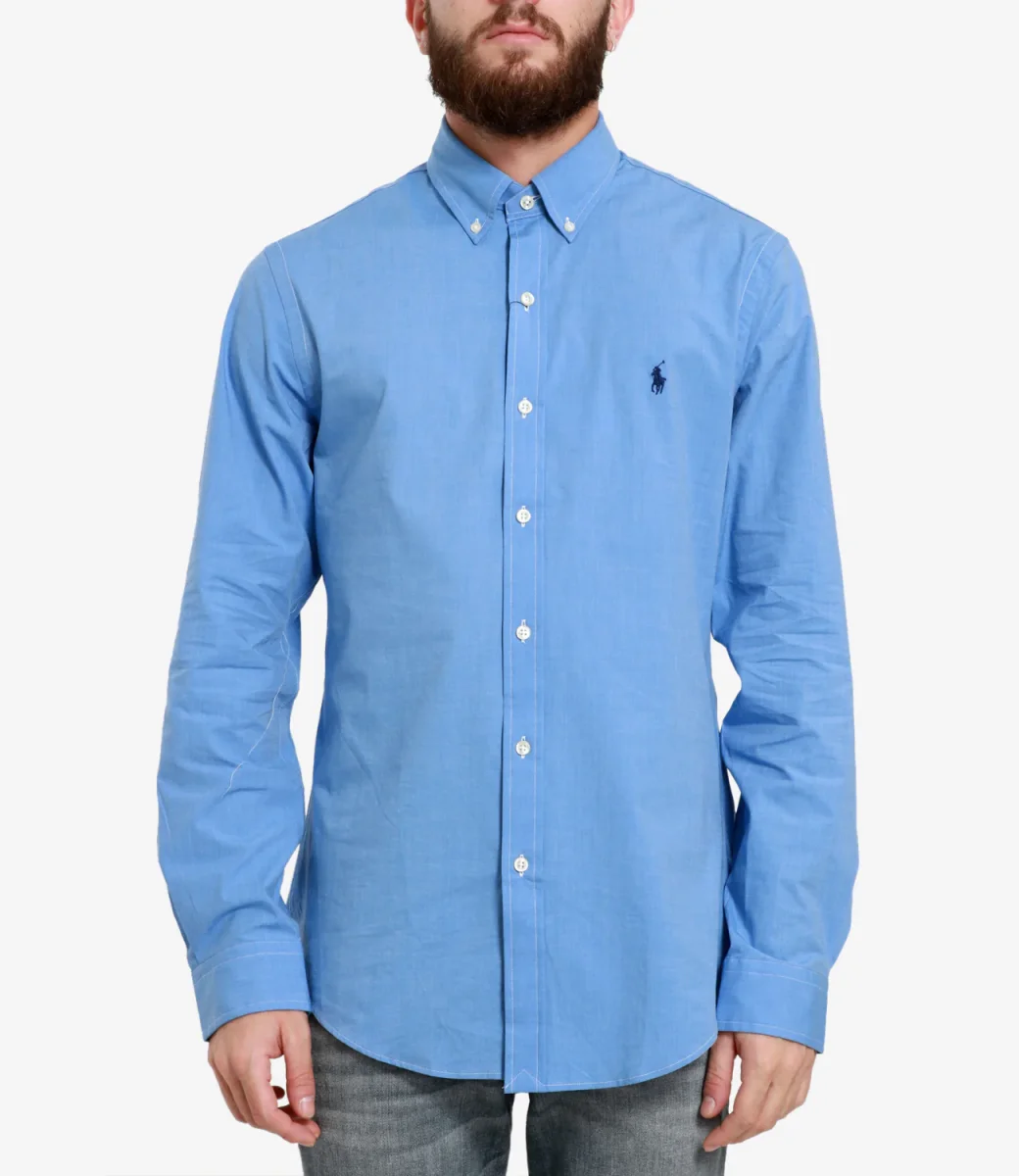 Camicia Polo Ralph Lauren in popeline con colletto, a maniche lunghe con chiusura frontale con bottoni e logo ricamato sulla parte sinistra del petto.