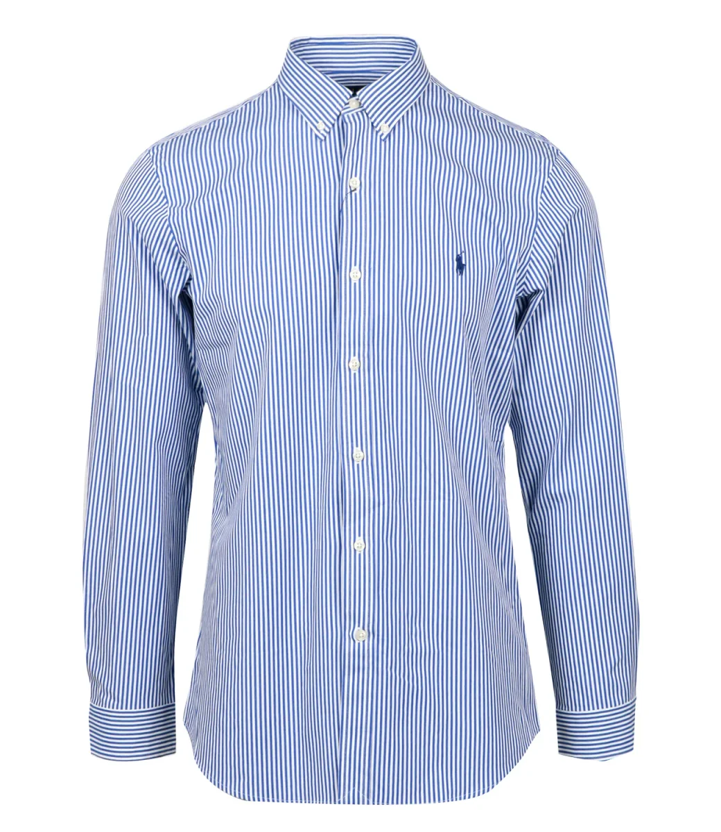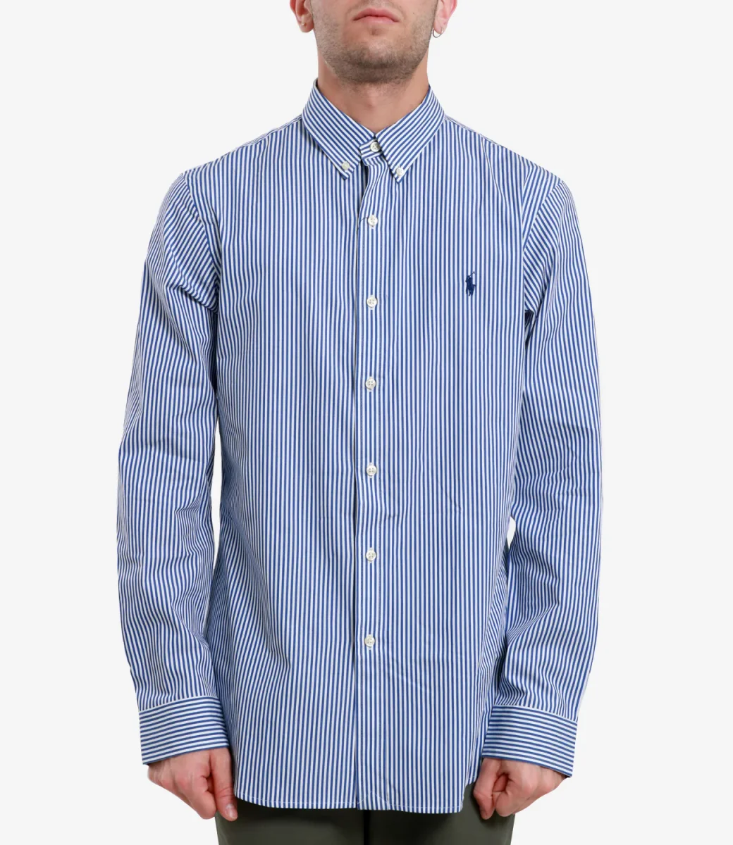 Camicia Polo Ralph Lauren in cotone traspirante ed elasticizzato, con collo a punta button-down, cannoncino con bottoni, maniche lunghe con polsini con bottoni , carré posteriore diviso con pieghe. Esclusivo pony ricamato sul lato sinistro del torace.