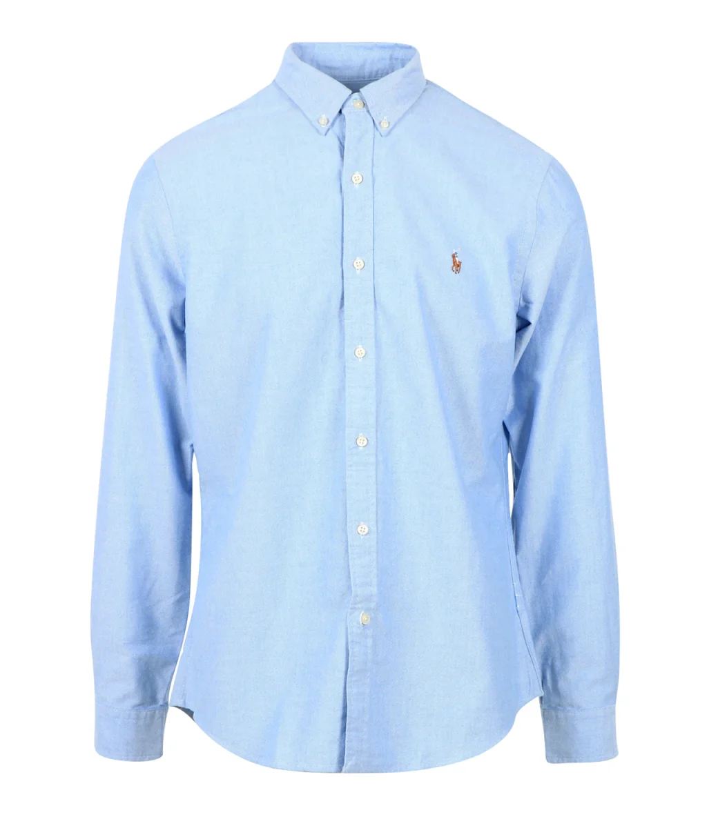 Camicia Ralph Lauren in oxford di cotone celeste è un versatile must, questa versione è impreziosita dall’ esclusivo pony multicolore ricamato.