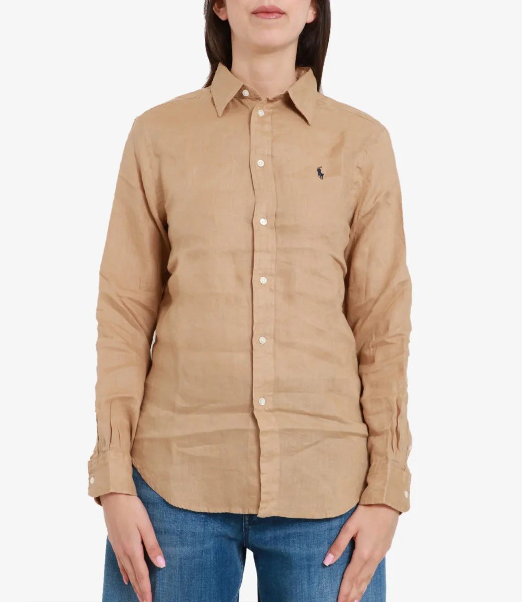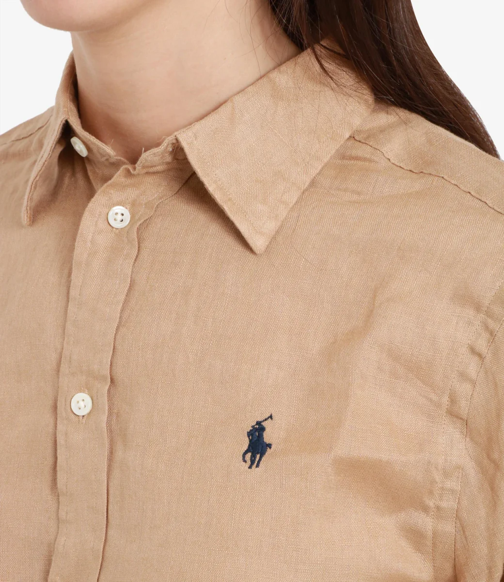 Camicia Polo Ralph Lauren in leggero lino. Silhouette rilassata per vivere in pieno comfort il caldo della stagione estiva mantenendo uno stile impeccabile.