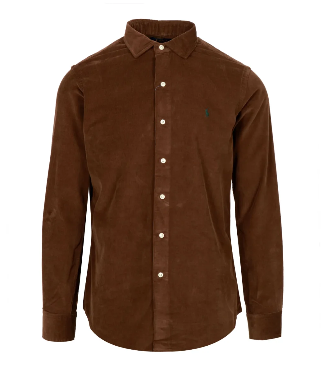 Camicia Polo Ralph Lauren in velluto di cotone a coste sottili dal fascino country. Vestibilità Custom-Fit sagomata, collo italiano e cannoncino con bottoni. Maniche lunghe con polsini. Carré posteriore diviso con pieghe. Iconico pony ricamato sul lato sinistro del torace