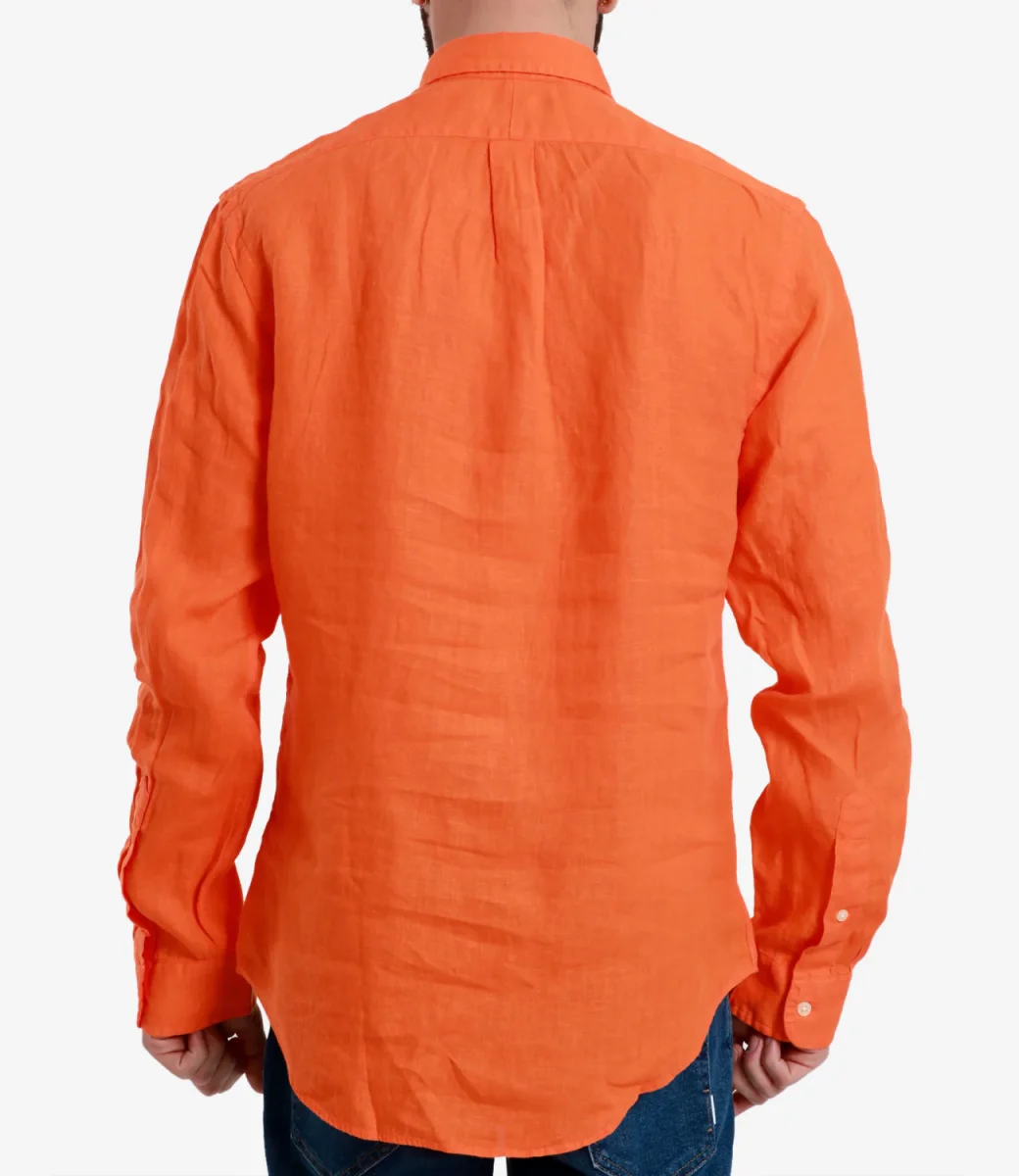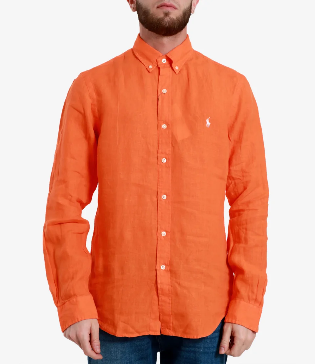 Camicia Polo Ralph Lauren in lino blu navy, leggero e traspirante, ideale per le giornate più calde. Il modello è alto 1.75m ed indossa una L.