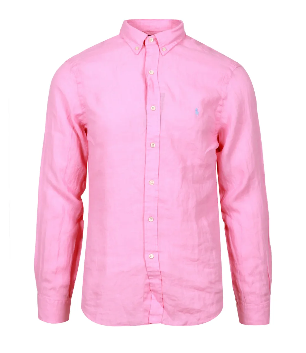 Camicia Polo Ralph Lauren in lino blu navy, leggero e traspirante, ideale per le giornate più calde. Il modello è alto 1.75m ed indossa una L.