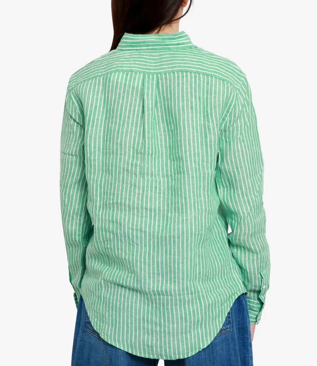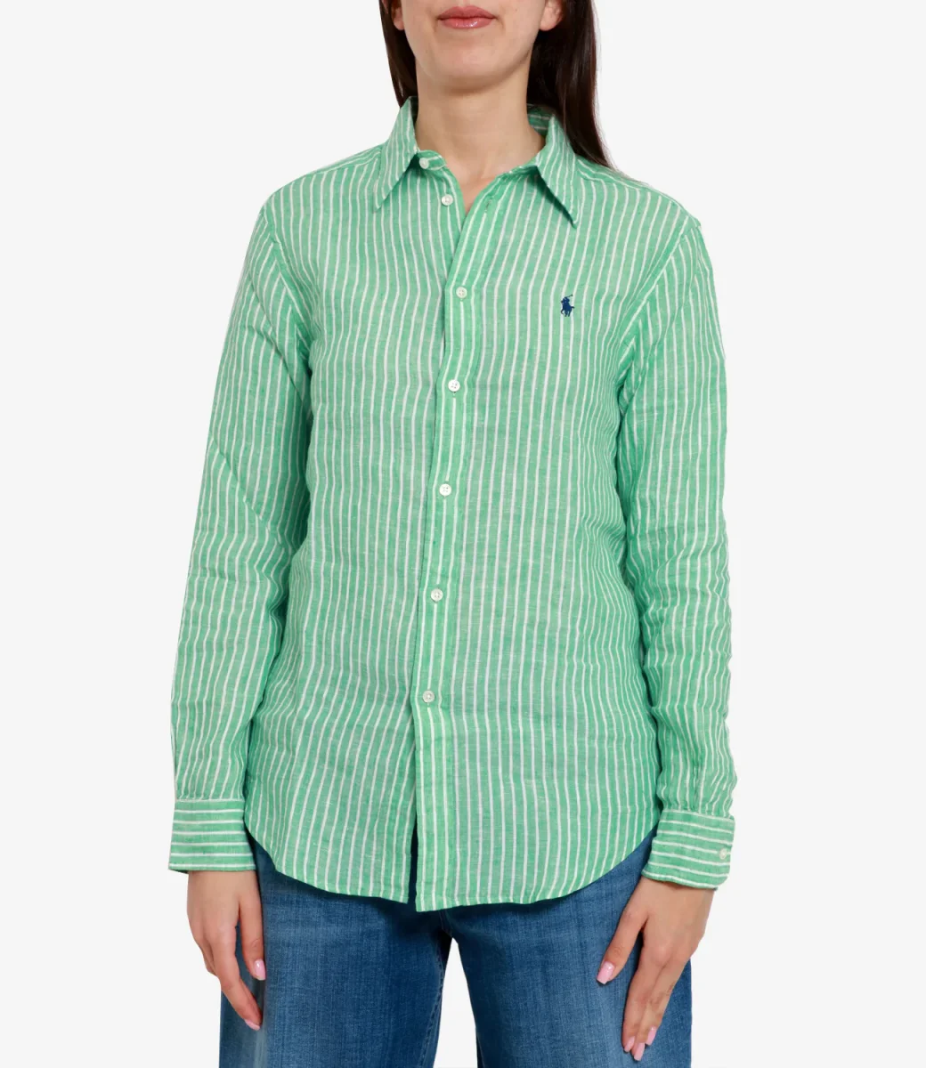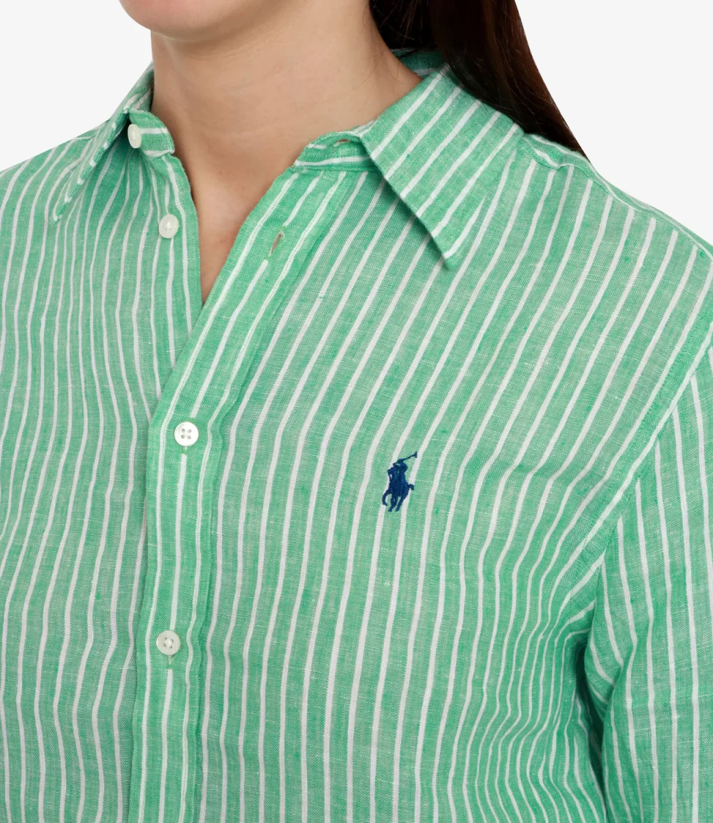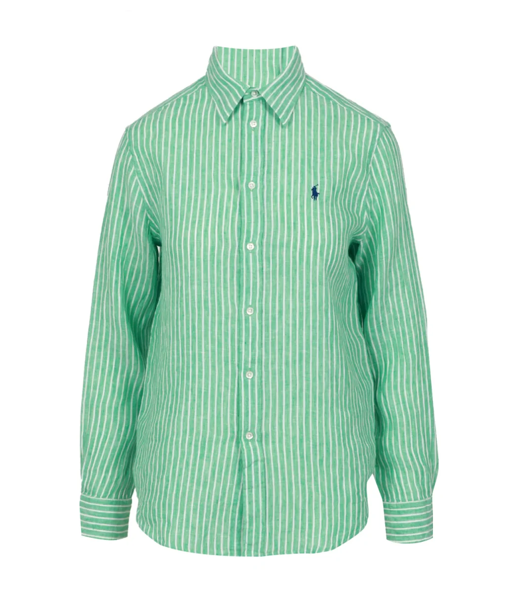 Camicia Polo Ralph Lauren in leggero lino dalla fantasia a righe verticali, silhouette rilassata per un outfit sbarazzino realizzato con materiali di grande qualità.
