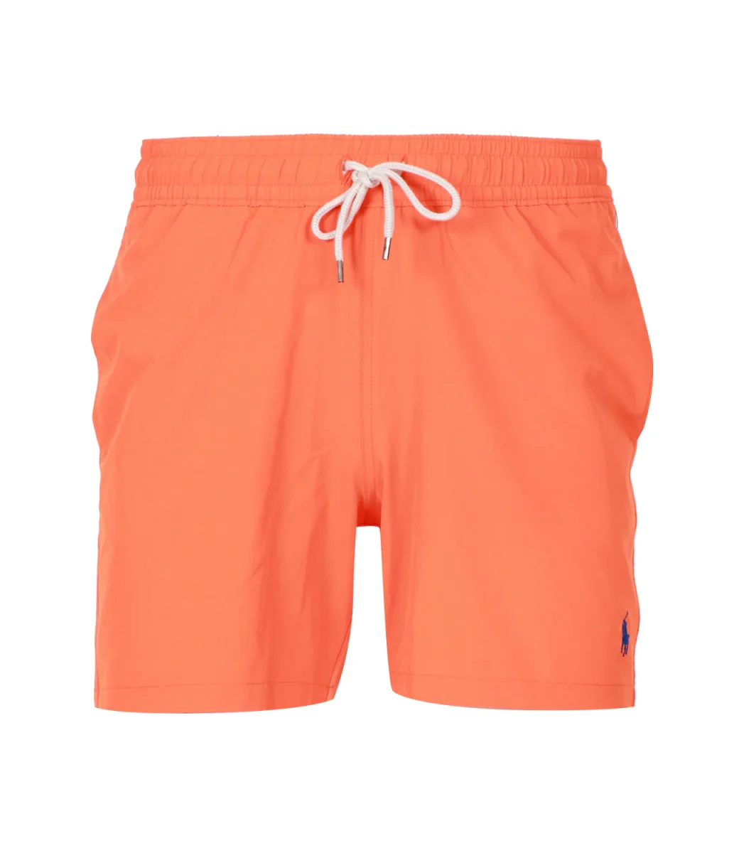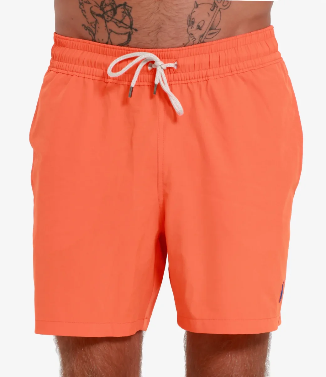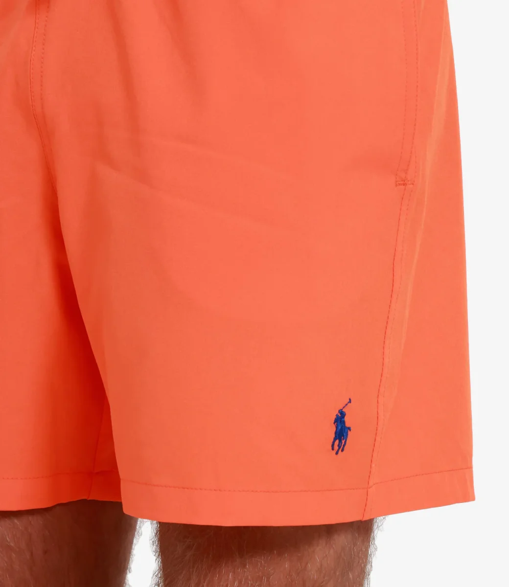 Costume boxer Polo Ralph Lauren in tessuto tecnico, vita elastica con coulisse esterna con finali in metallo, tasche laterali all’americana, caratteristico Pony ricamato sul davanti.