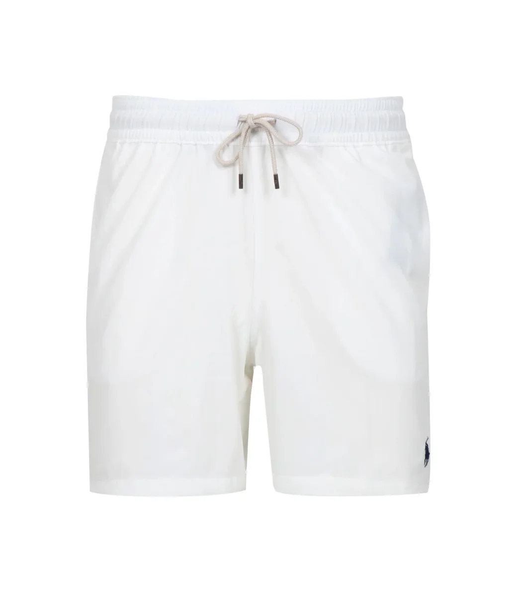 Costume boxer Polo Ralph Lauren in tessuto tecnico, vita elastica con coulisse esterna con finali in metallo, tasche laterali all’americana, caratteristico Pony ricamato sul davanti.