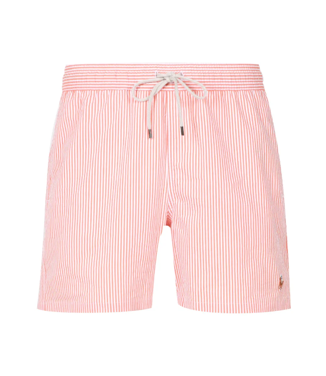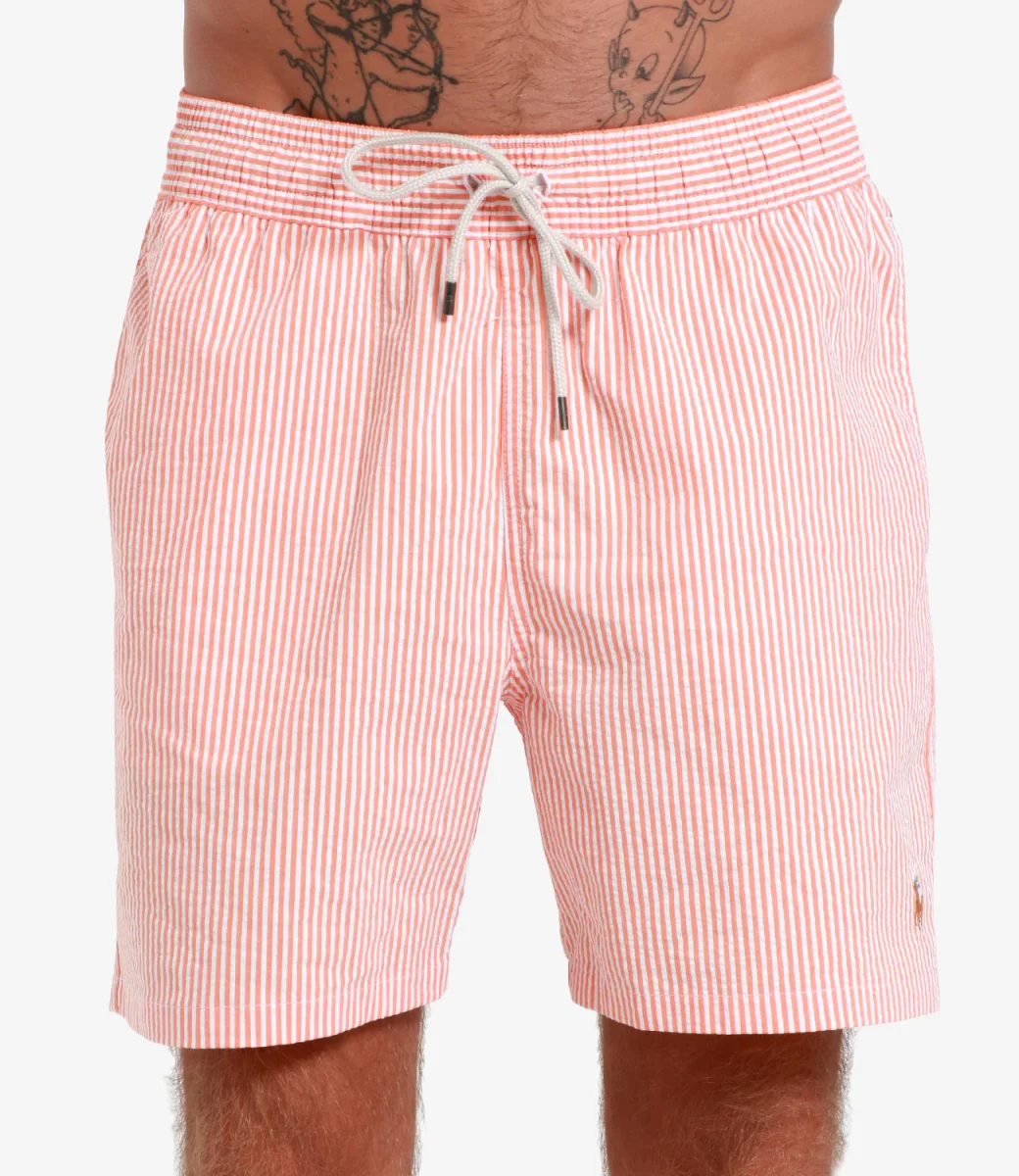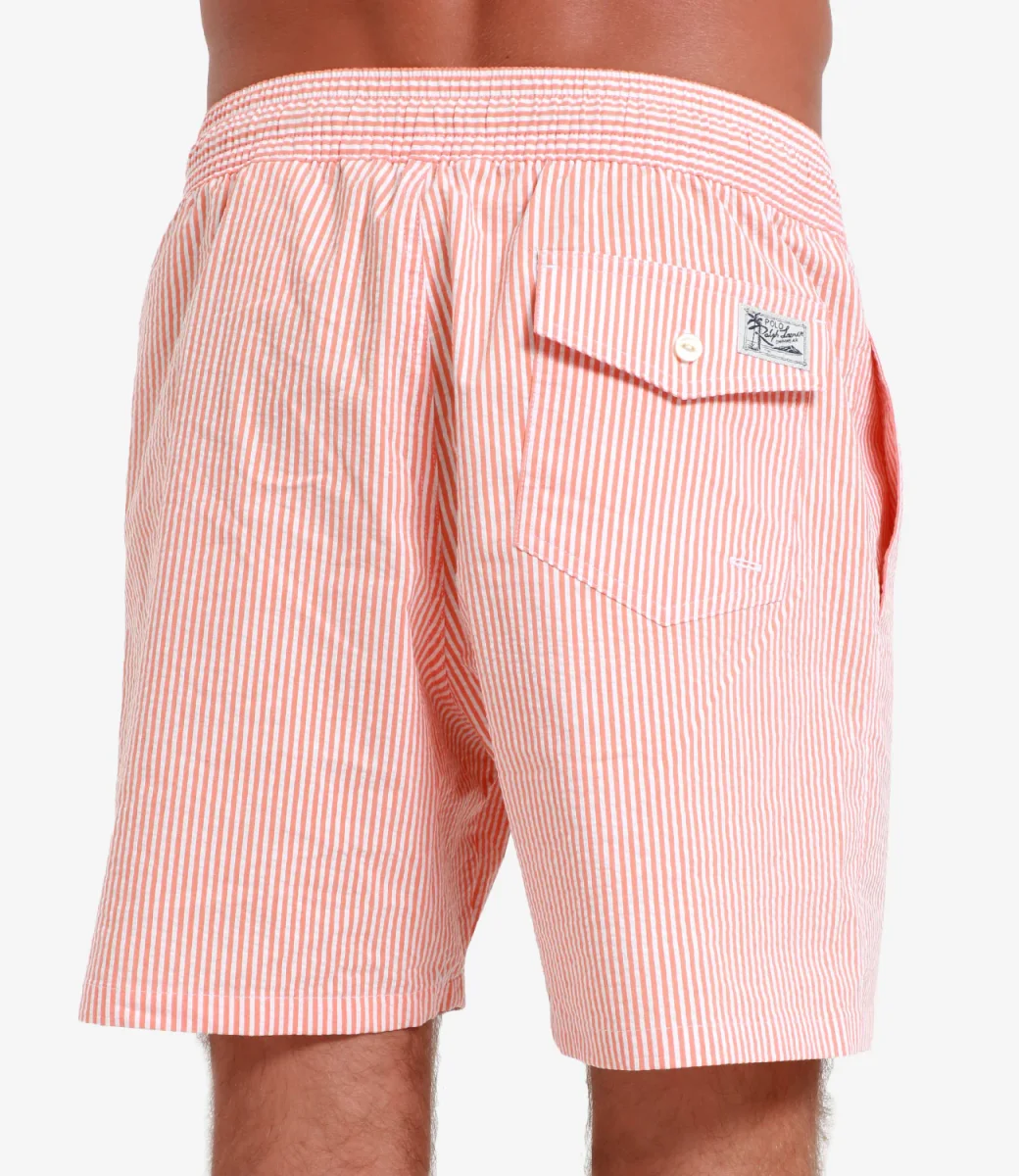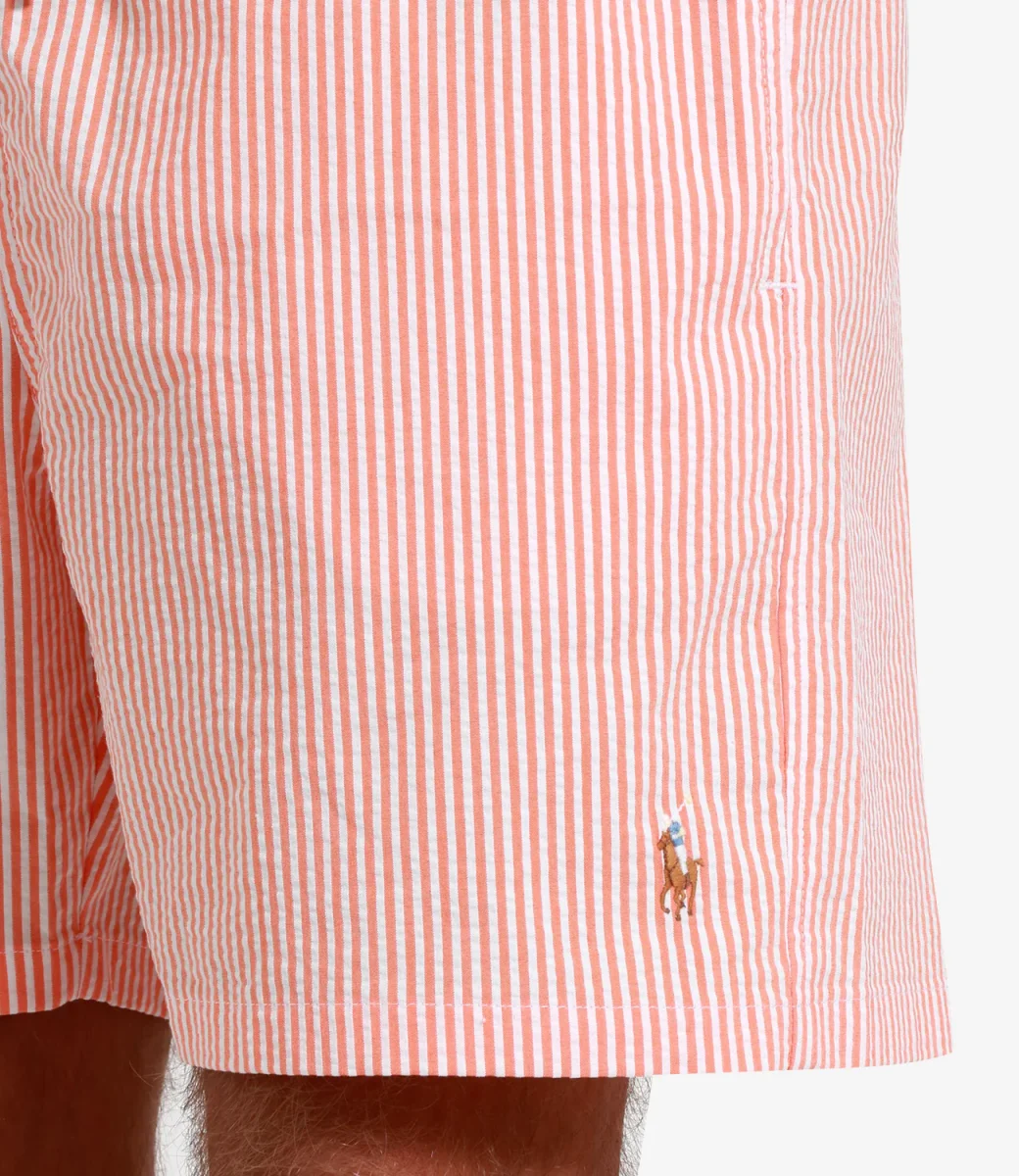 Costume boxer Polo Ralph Lauren modello Traveler Classic Swim. Il seersucker di misto cotone stretch dona a questi boxer da mare foderati in rete un iconico look Polo.Rifiniti con l’esclusivo pony ricamato,e con il motivo a righe questi boxer da mare foderati in rete conferiscono un raffinato stile Polo, dentro o fuori dall’acqua.