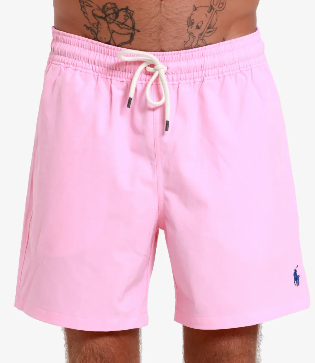 Costume boxer Polo Ralph Lauren modello Traveler Classic Swim Rifiniti , con vita elastica e coulisse esterna con finali in metallo, tasche laterali all’americana, caratteristico pony ricamato, tasca applicata sul retro con patta e bottone a vista, foderati in rete conferiscono un iconico stile Polo dentro e fuori dall’acqua.