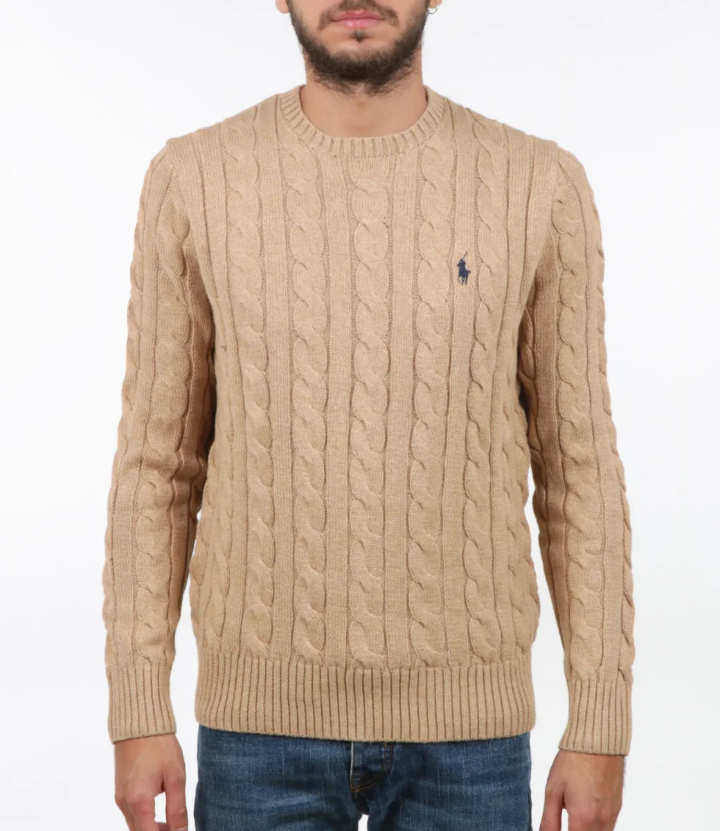 Maglia Polo Ralph Lauren in cotone nell’iconico motivo a trecce. Girocollo, maniche lunghe con polsini a coste, orlo con lavorazione a coste. Esclusivo pony ricamato sul lato sinistro del torace.