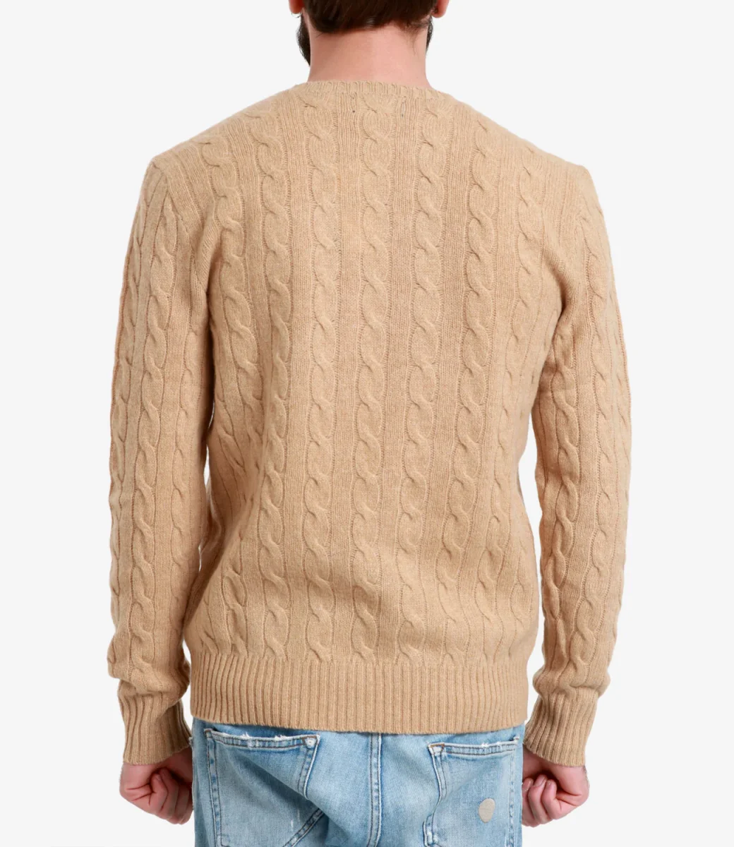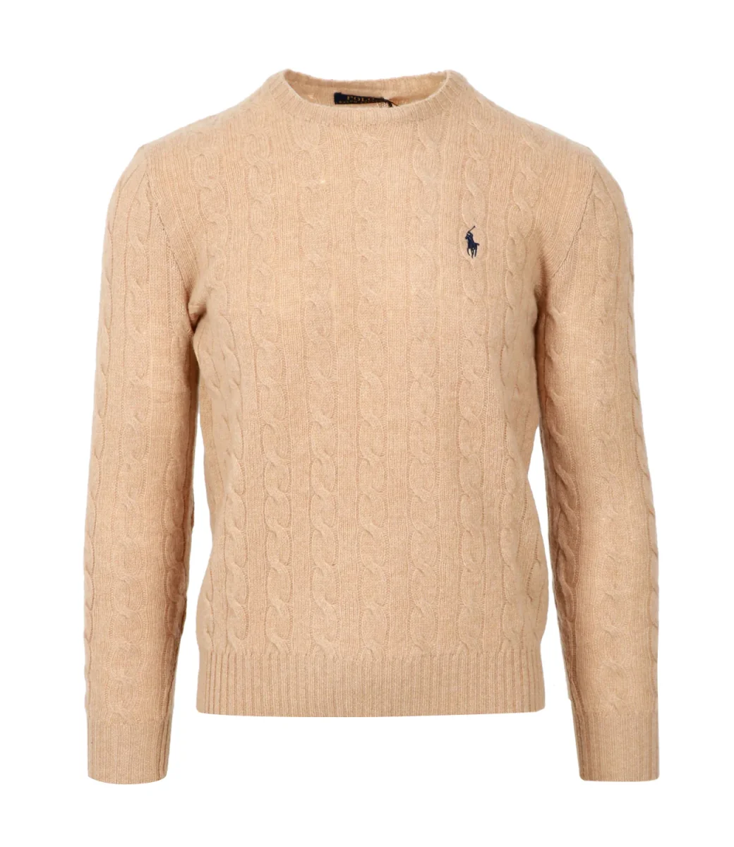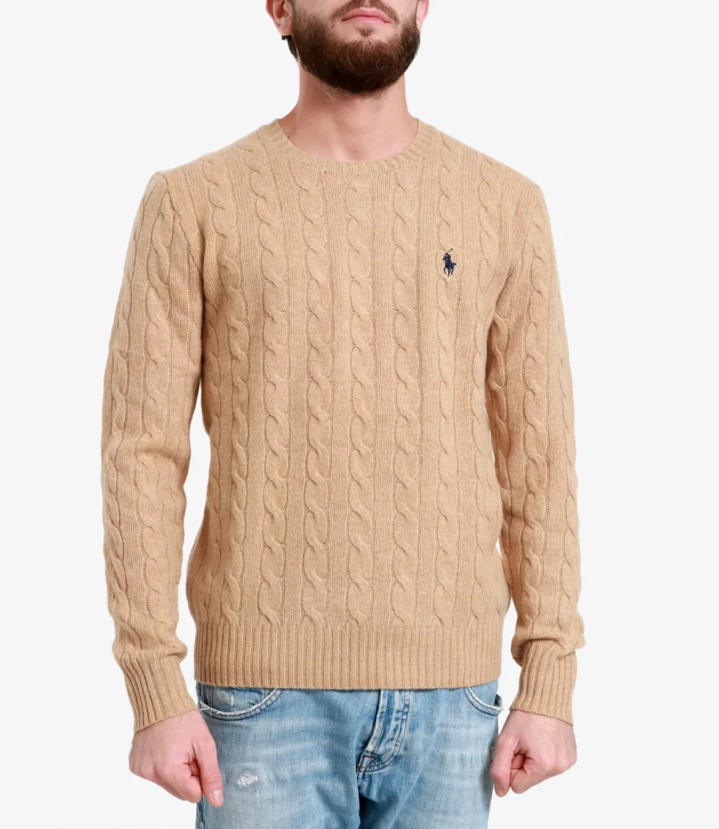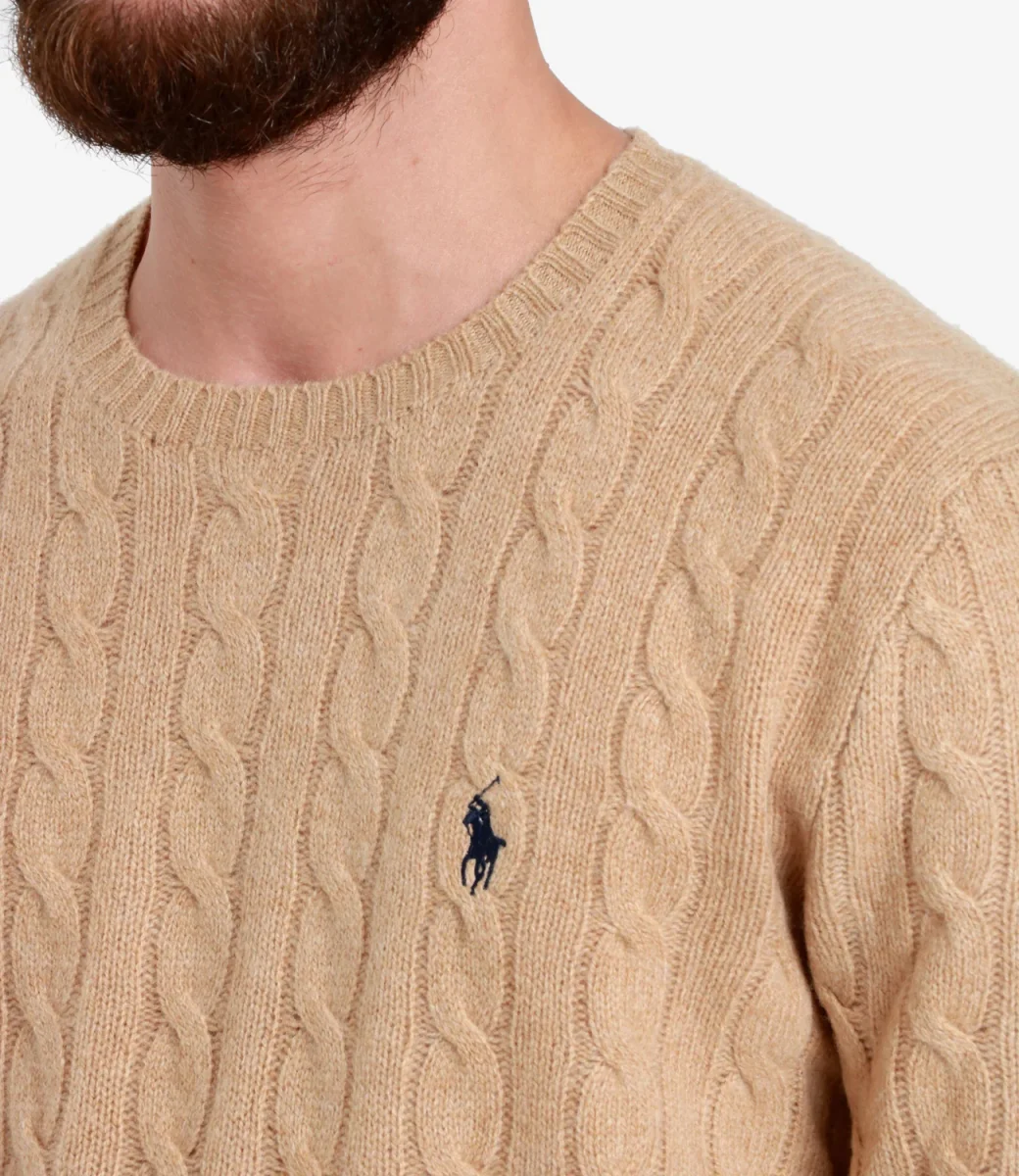 Maglia Polo Ralph Lauren, iconico capo a trecce, realizzata con filato di lana italiana e cashmere, girocollo, maniche lunghe con polsini a costine, fondo con bordo a coste.