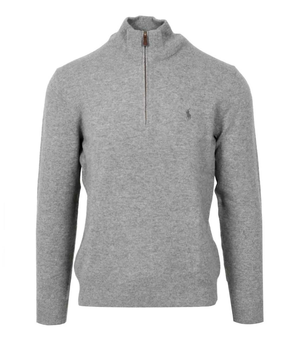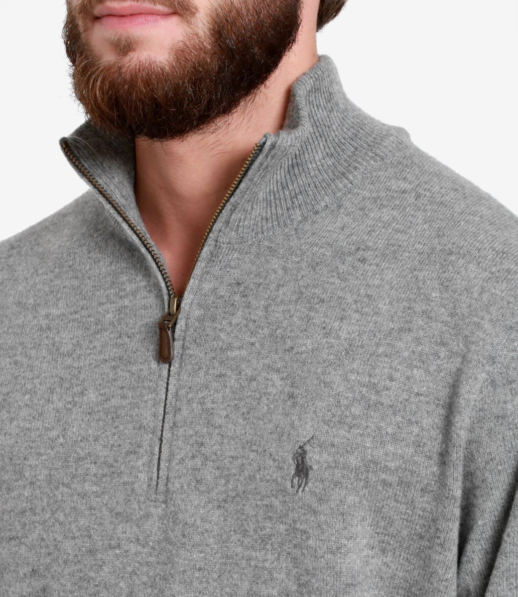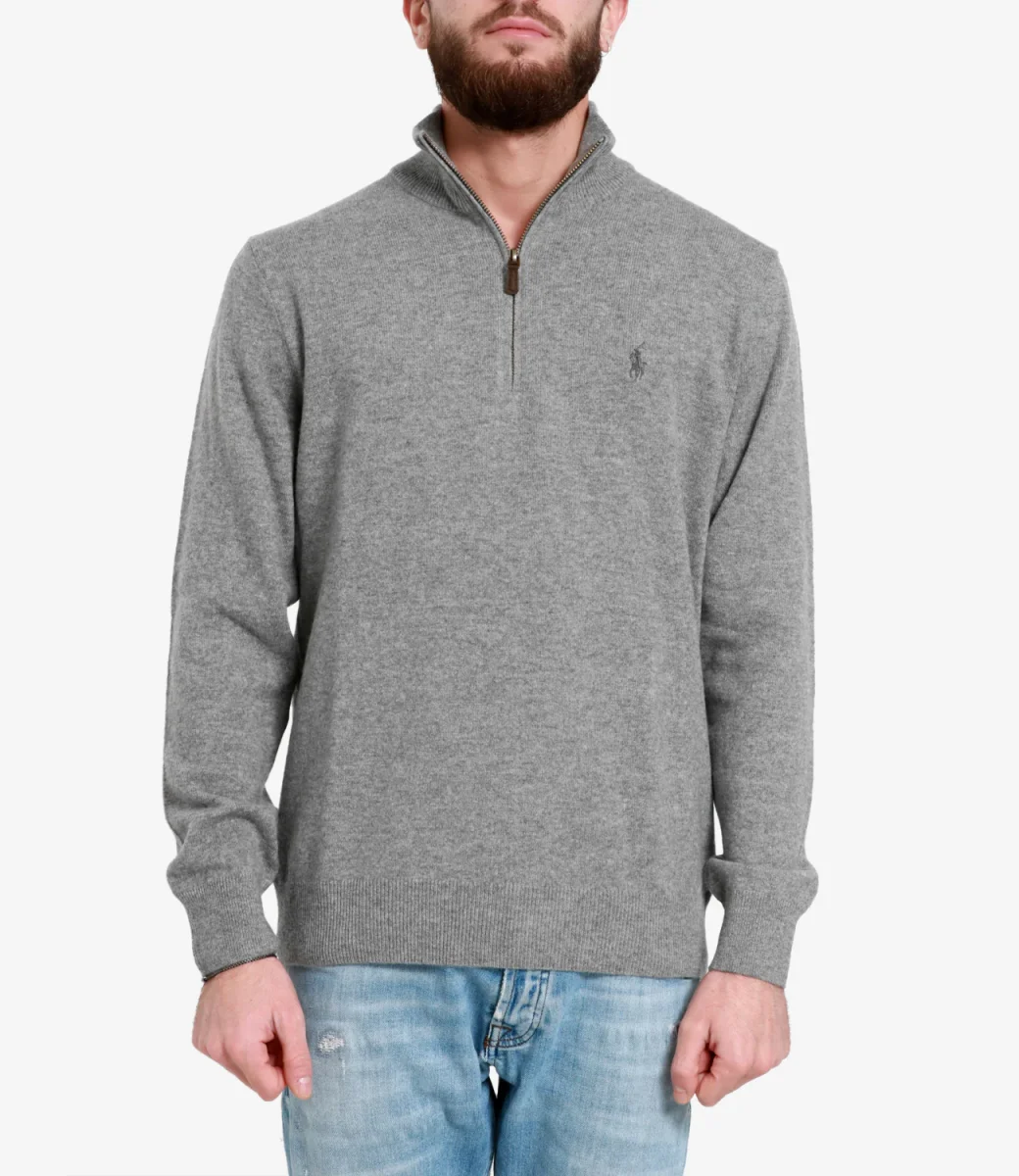 Maglia Polo Ralph Lauren in pregiata lana italiana, esclusivo pony ricamato sul lato sinistro del torace, chiusura con un quarto di cerniera, maniche lunghe con polsini a costine, fondo con bordo a coste.