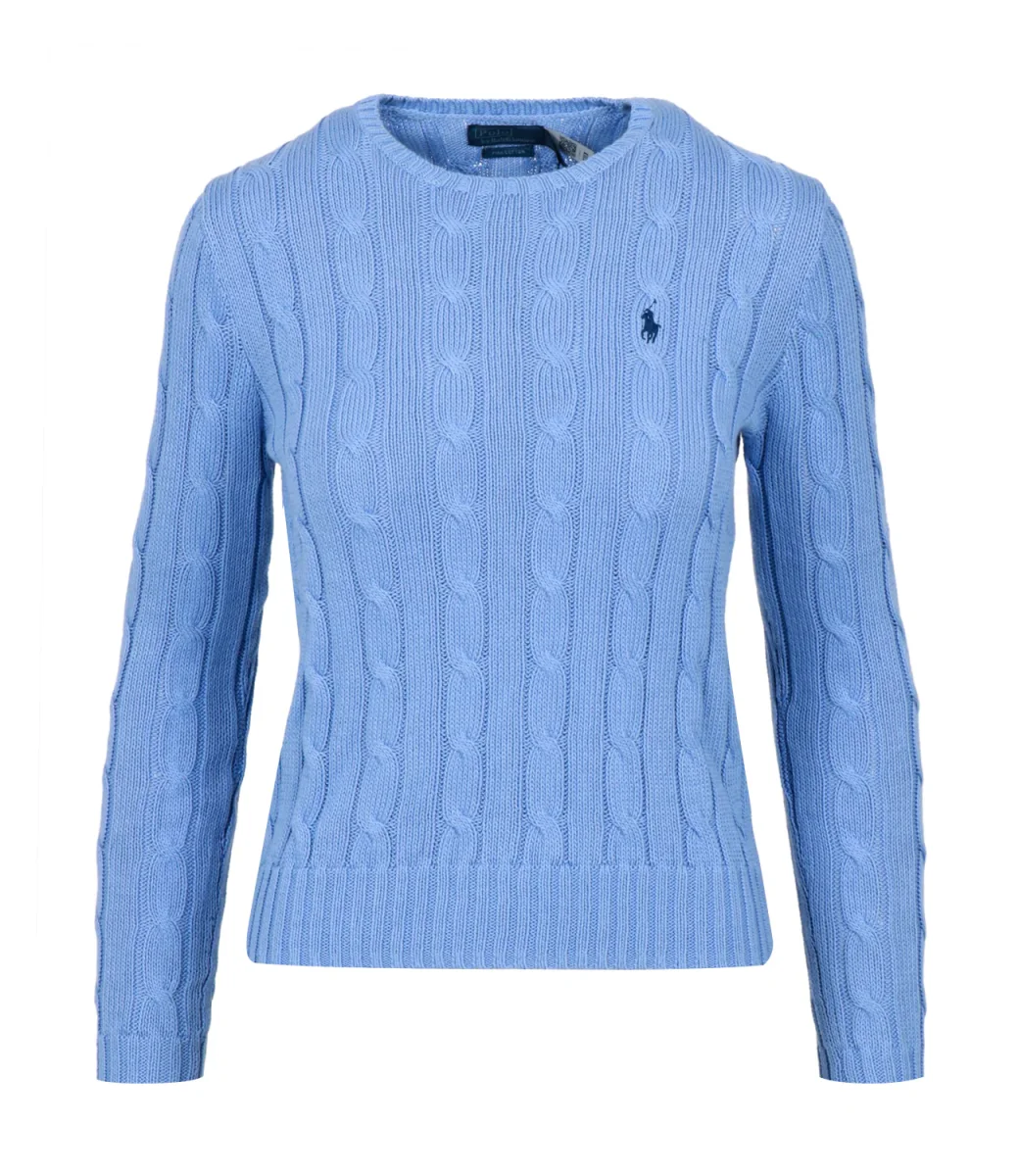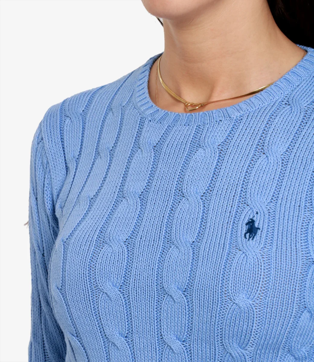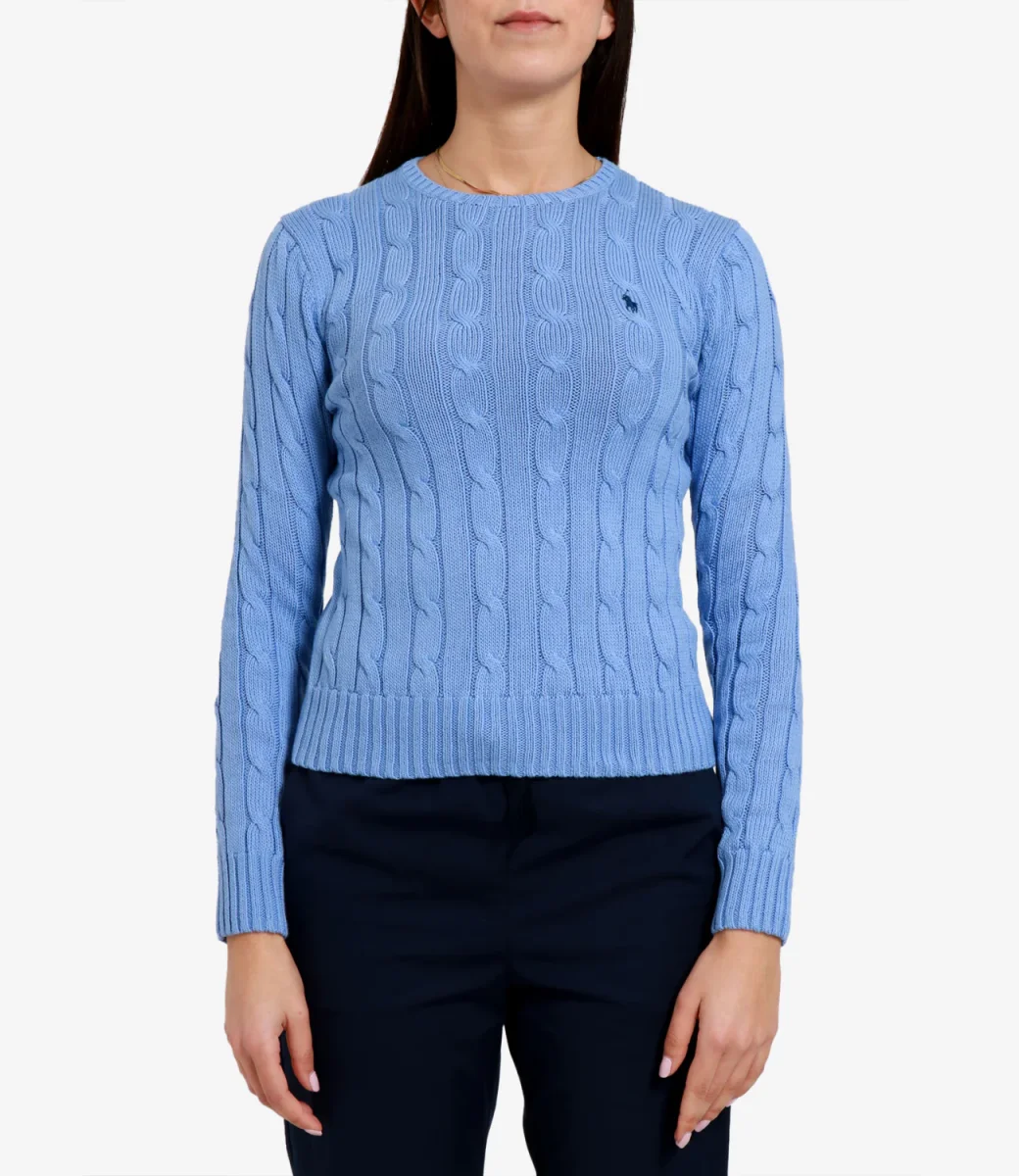 Maglia Polo Ralph Lauren Julianna in cotone, con distintivo motivo a trecce, girocollo a costine, maniche lunghe con polsini a costine, iconico pony ricamato sul petto lato sinistro, fondo con bordo a costine.