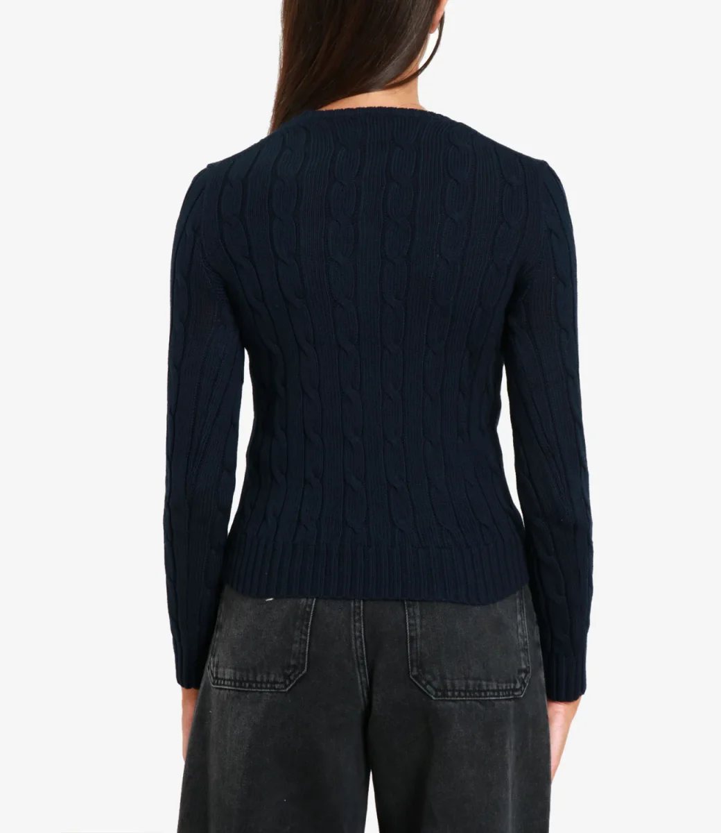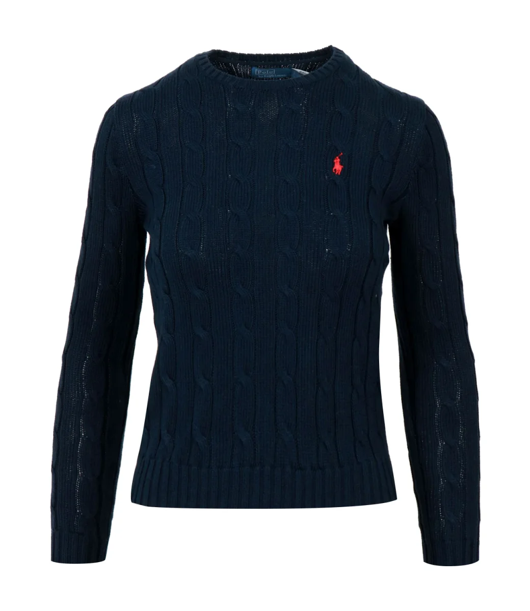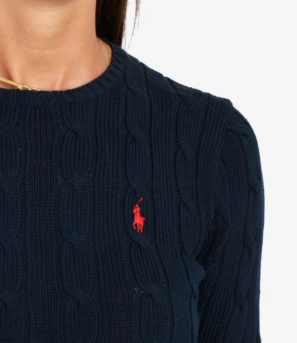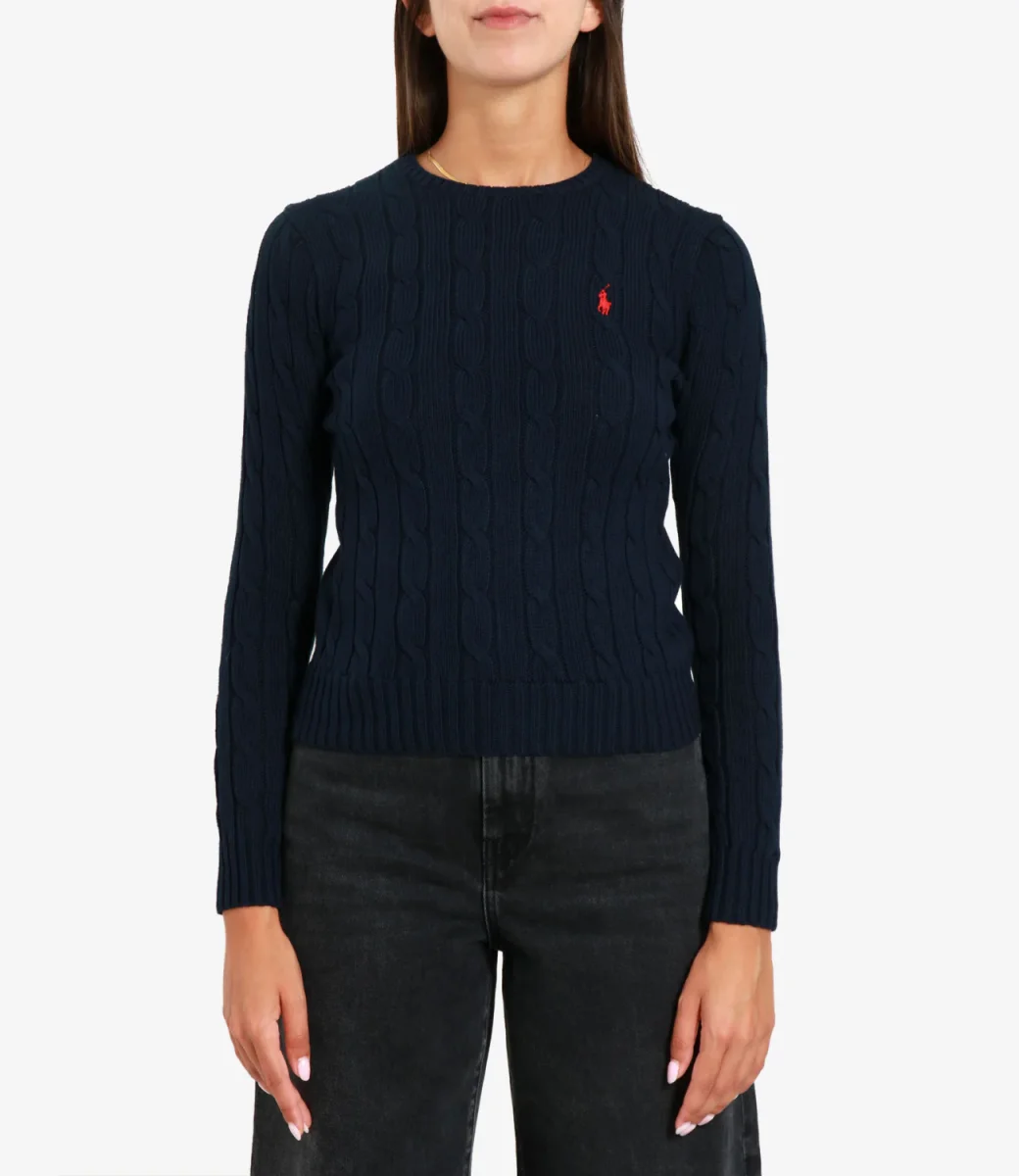 Maglia Polo Ralph Lauren Julianna in cotone, con distintivo motivo a trecce, girocollo a costine, maniche lunghe con polsini a costine, iconico pony ricamato sul petto lato sinistro, fondo con bordo a costine.