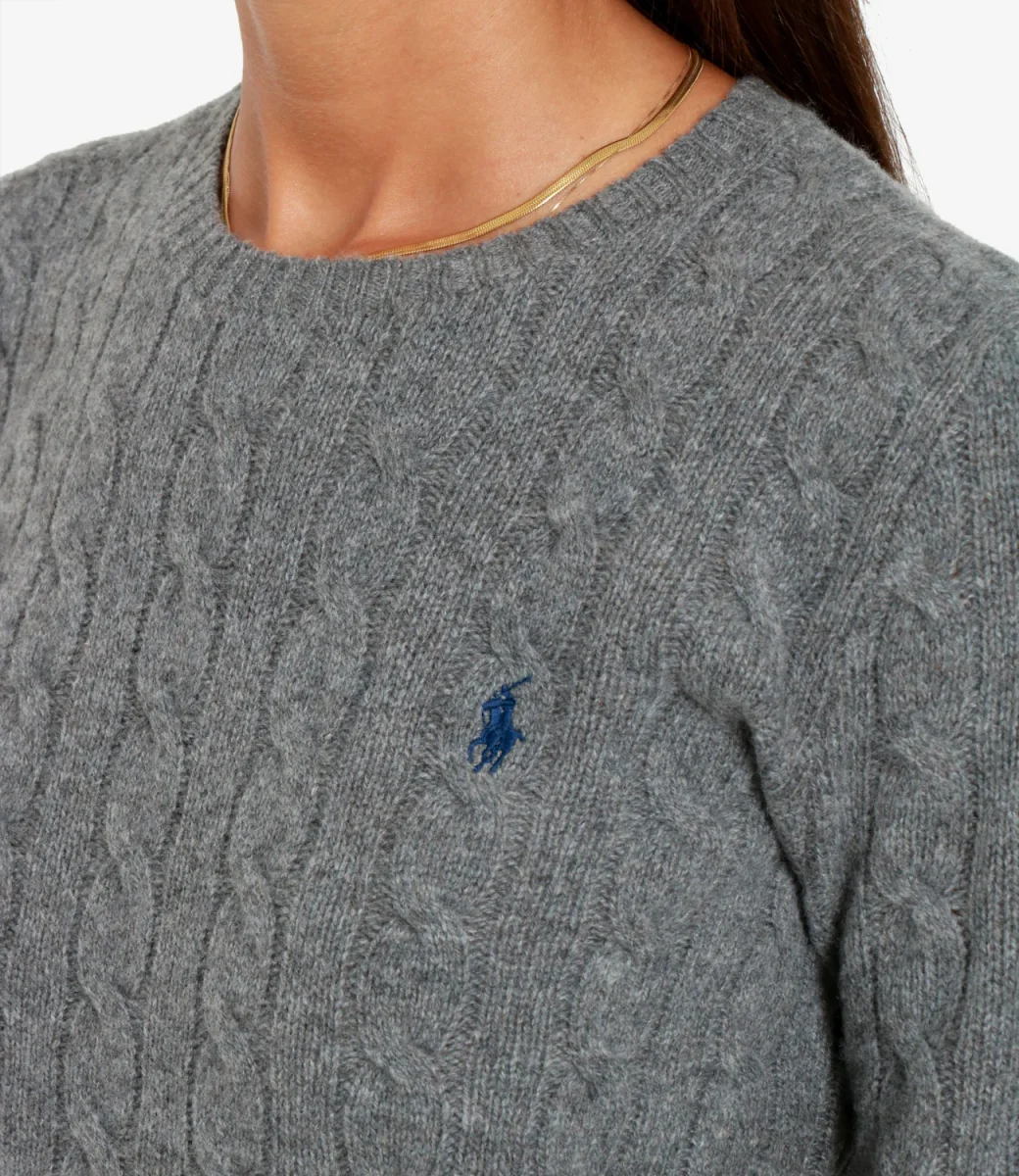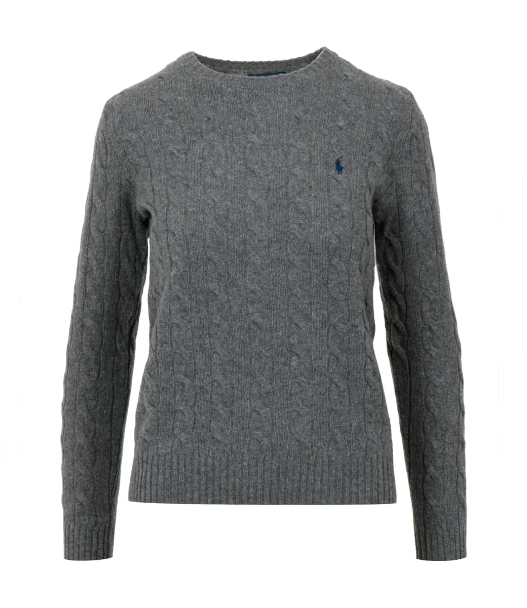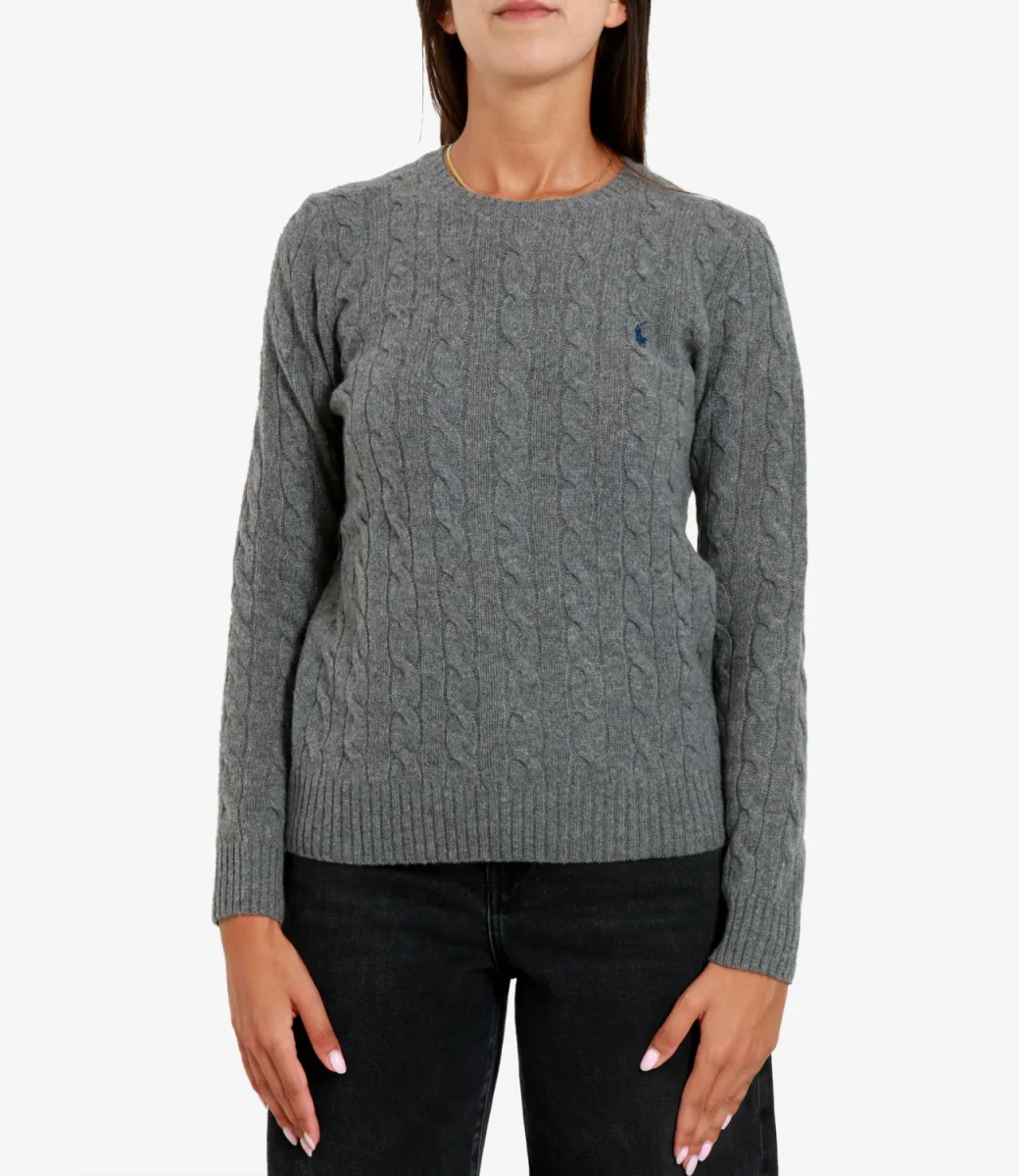 Maglia Polo Ralph Lauren Julianna in lana e cashmere, con distintivo motivo a trecce, girocollo a costine, maniche lunghe con polsini a costine, iconico pony ricamato sul petto lato sinistro, fondo con bordo a costine.
