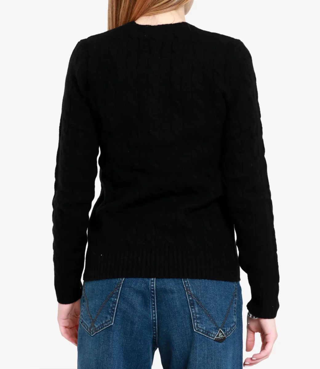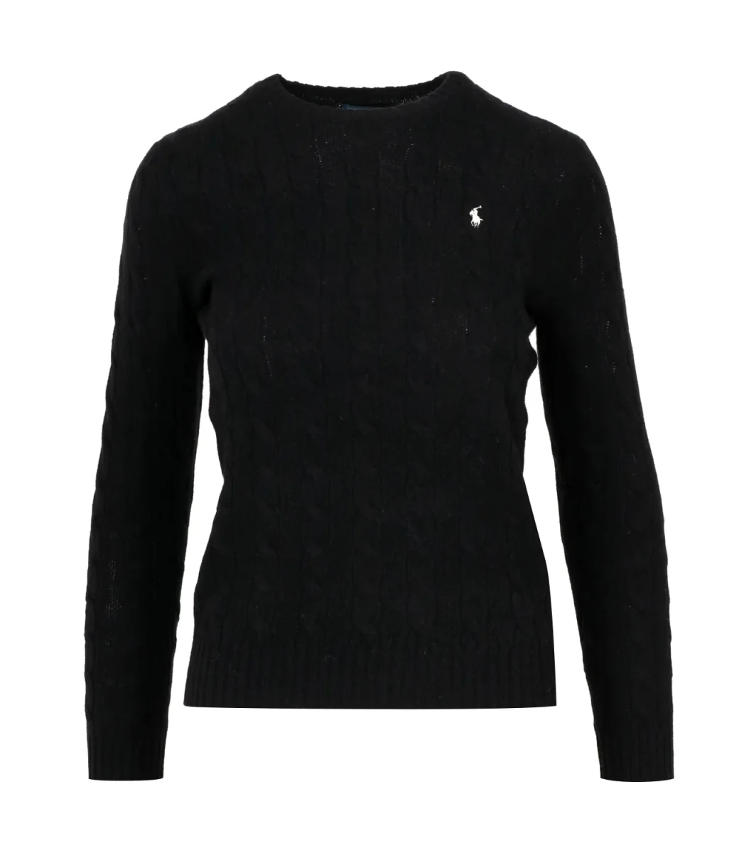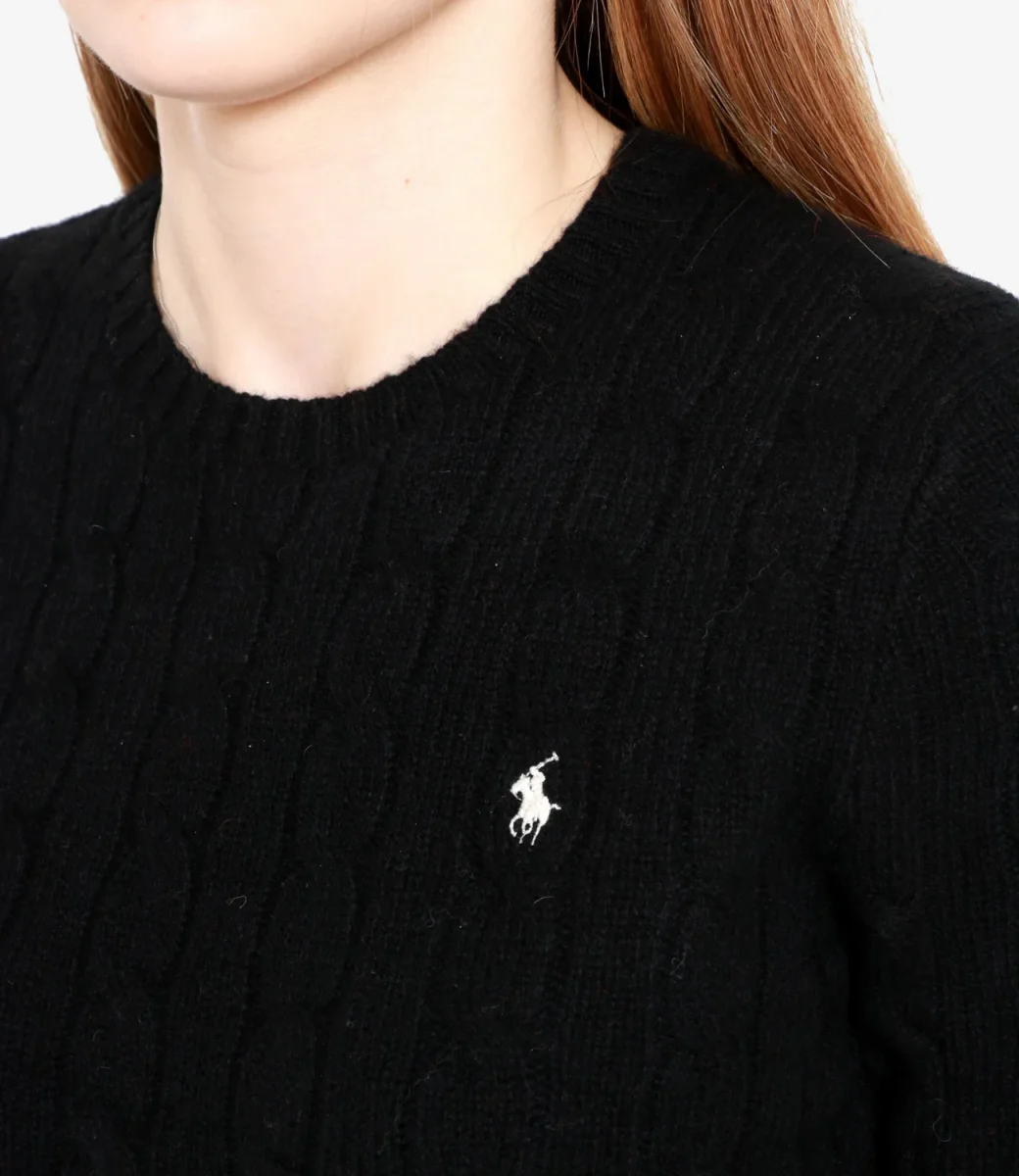 Maglia Polo Ralph Lauren Julianna in lana e cashmere, con distintivo motivo a trecce, girocollo a costine, maniche lunghe con polsini a costine, iconico pony ricamato sul petto lato sinistro, fondo con bordo a costine.