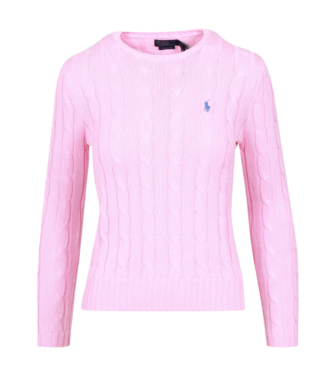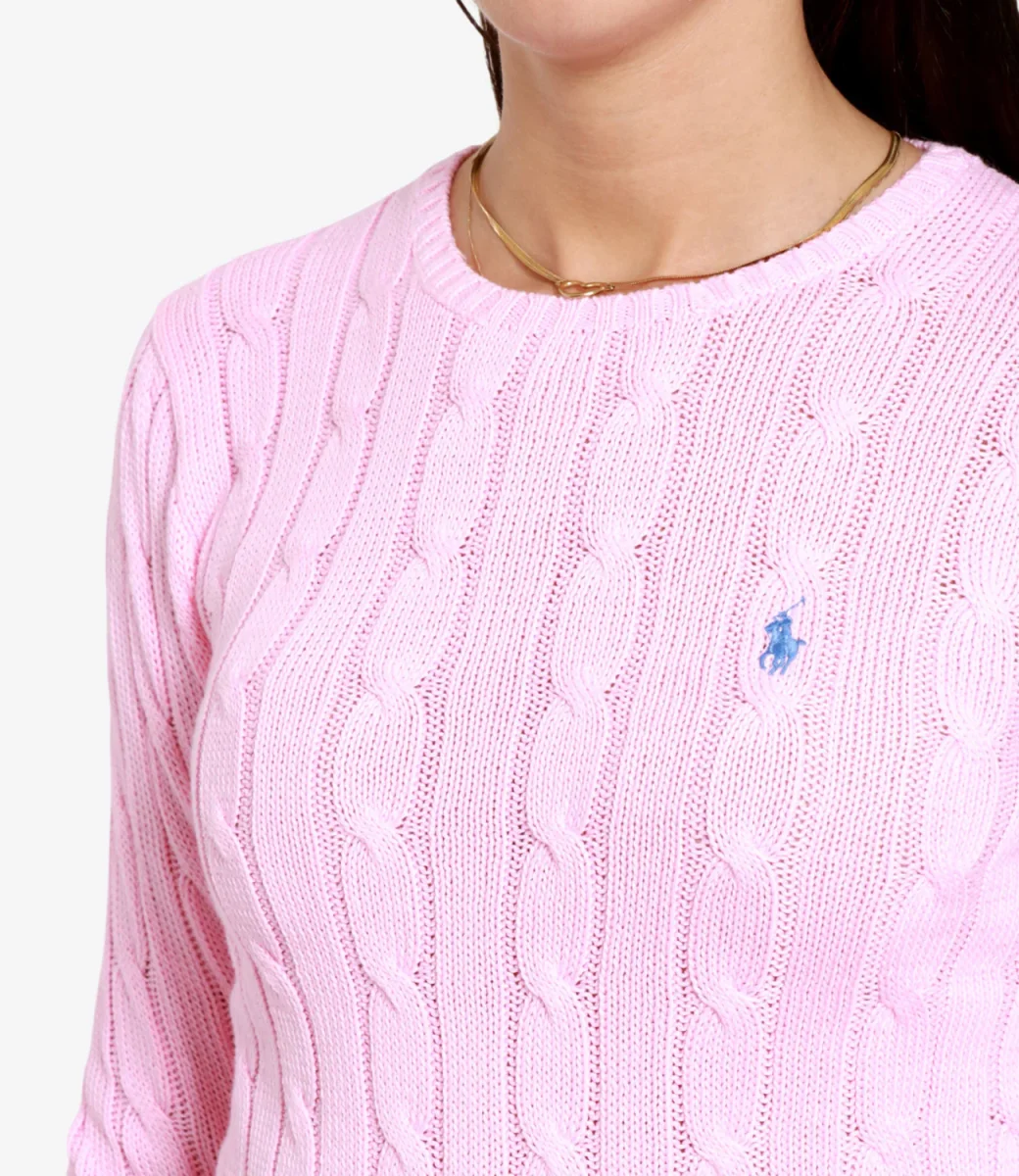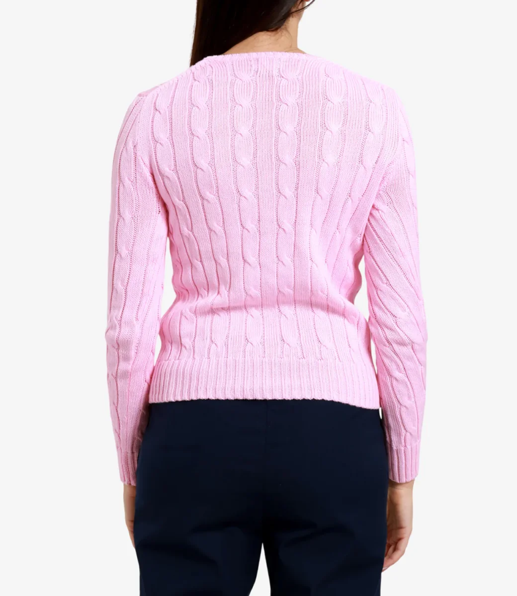 Maglia Polo Ralph Lauren Julianna in cotone, con distintivo motivo a trecce, girocollo a costine, maniche lunghe con polsini a costine, iconico pony ricamato sul petto lato sinistro, fondo con bordo a costine.