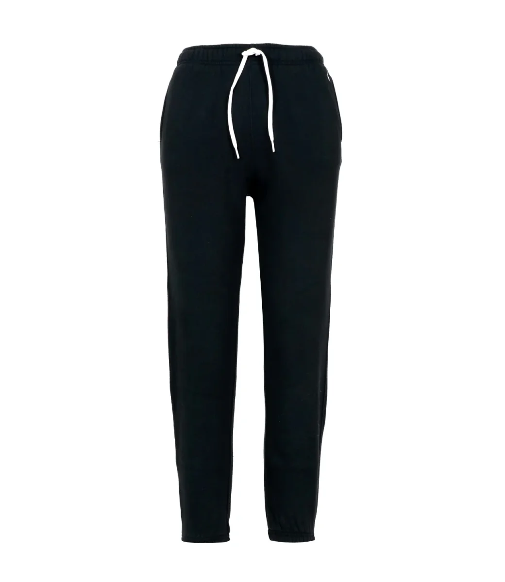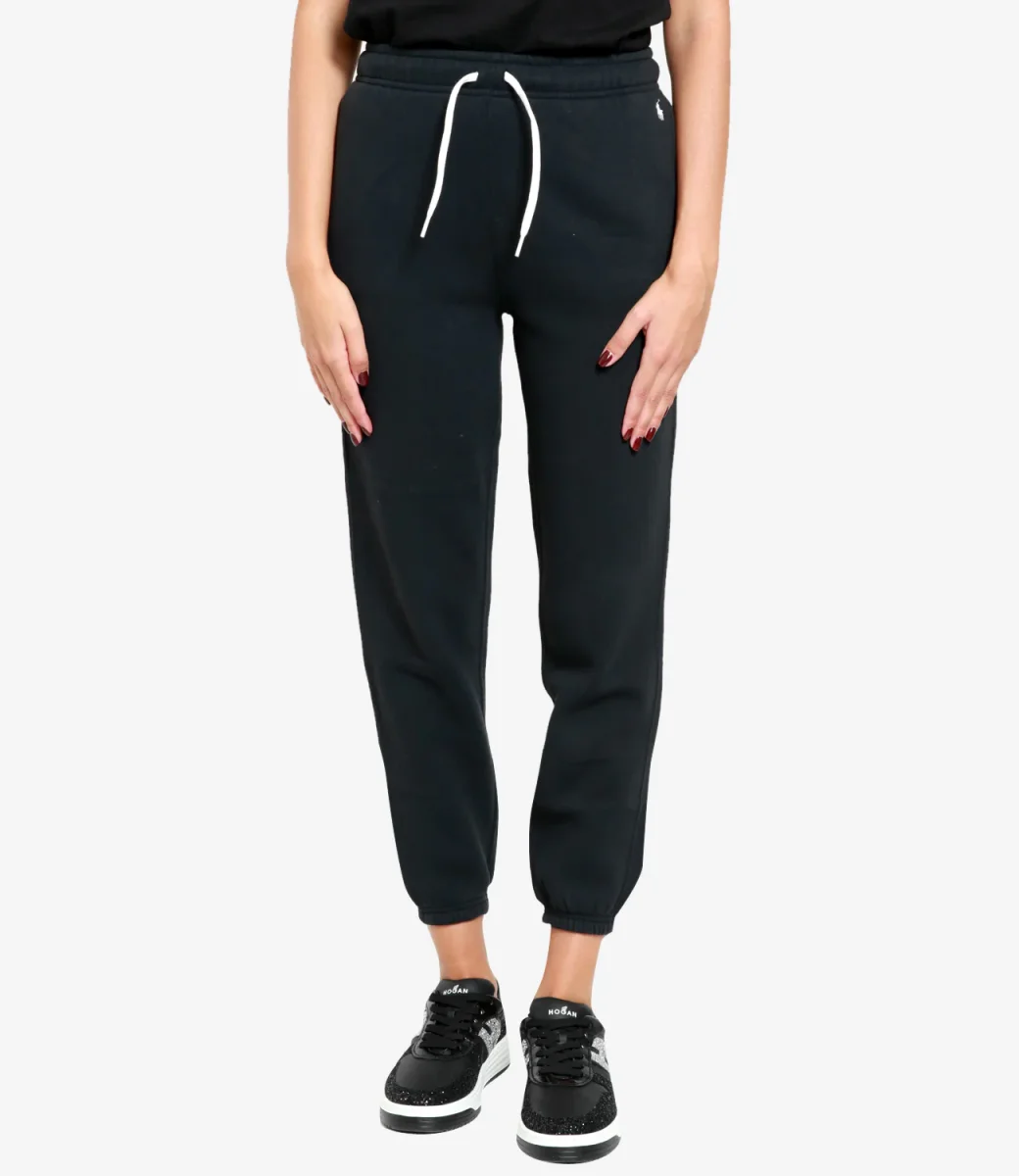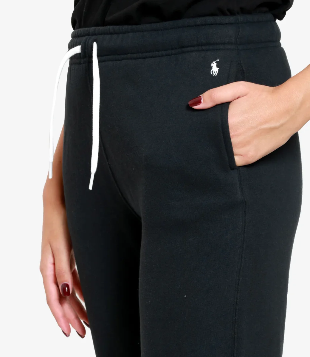 Pantalone Sportivo Polo Ralph Lauren in cotone nero con vita elastica e coulisse, logo, tasche, vita e polsini elastici.