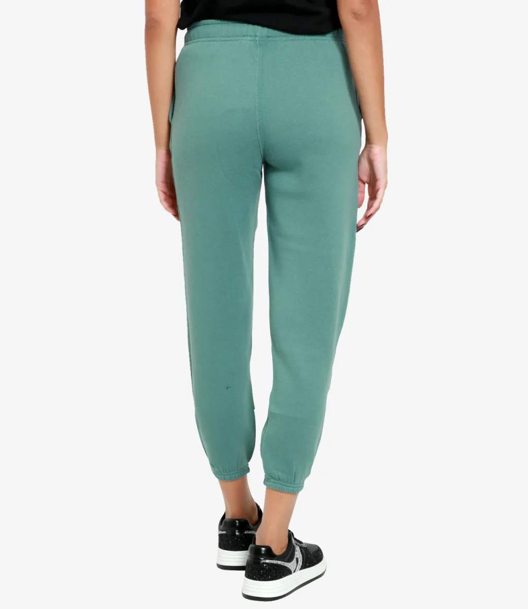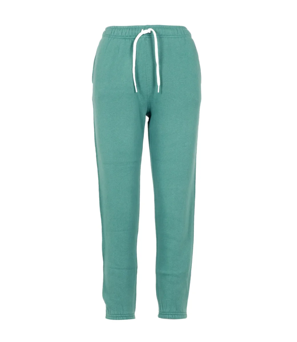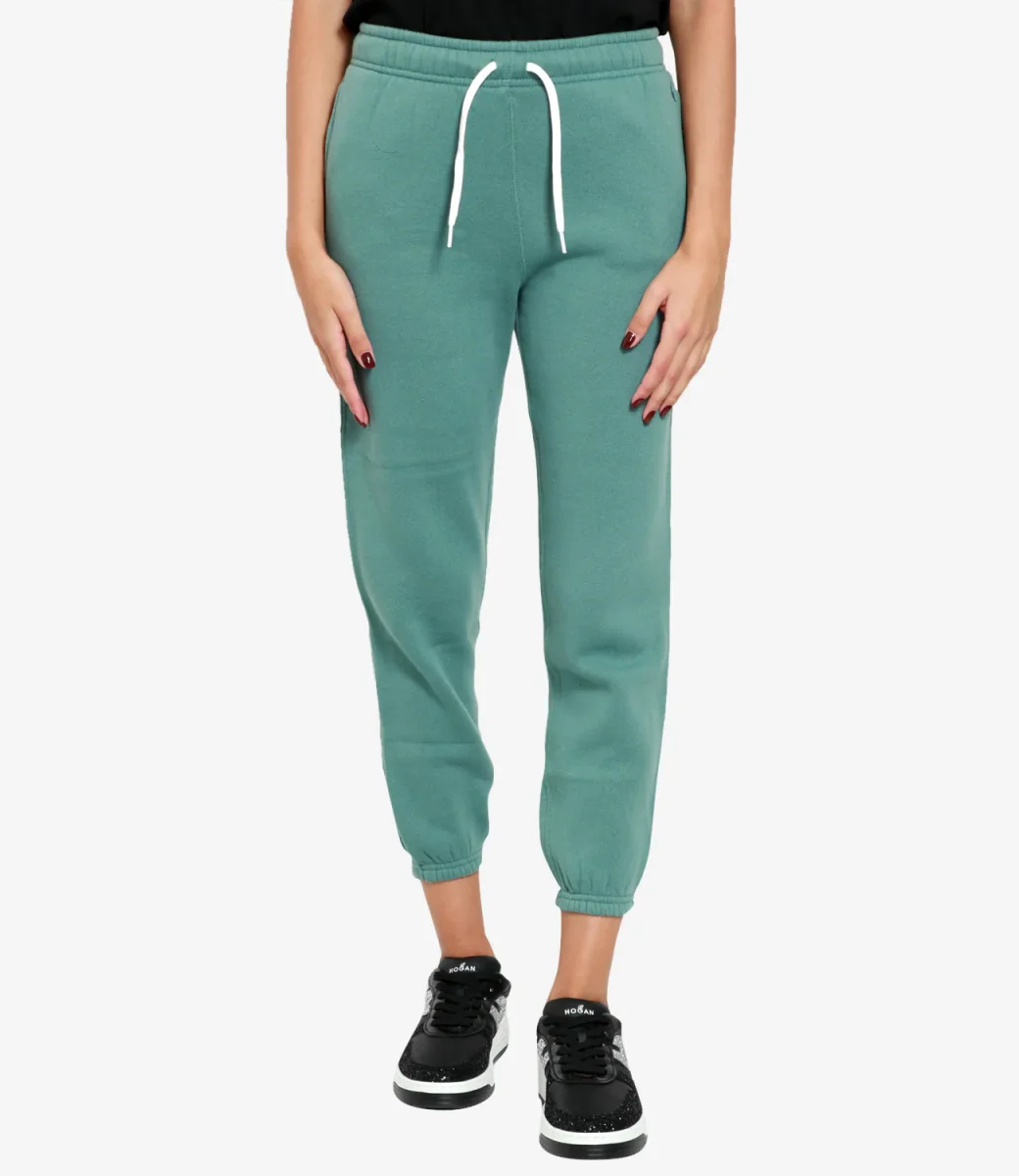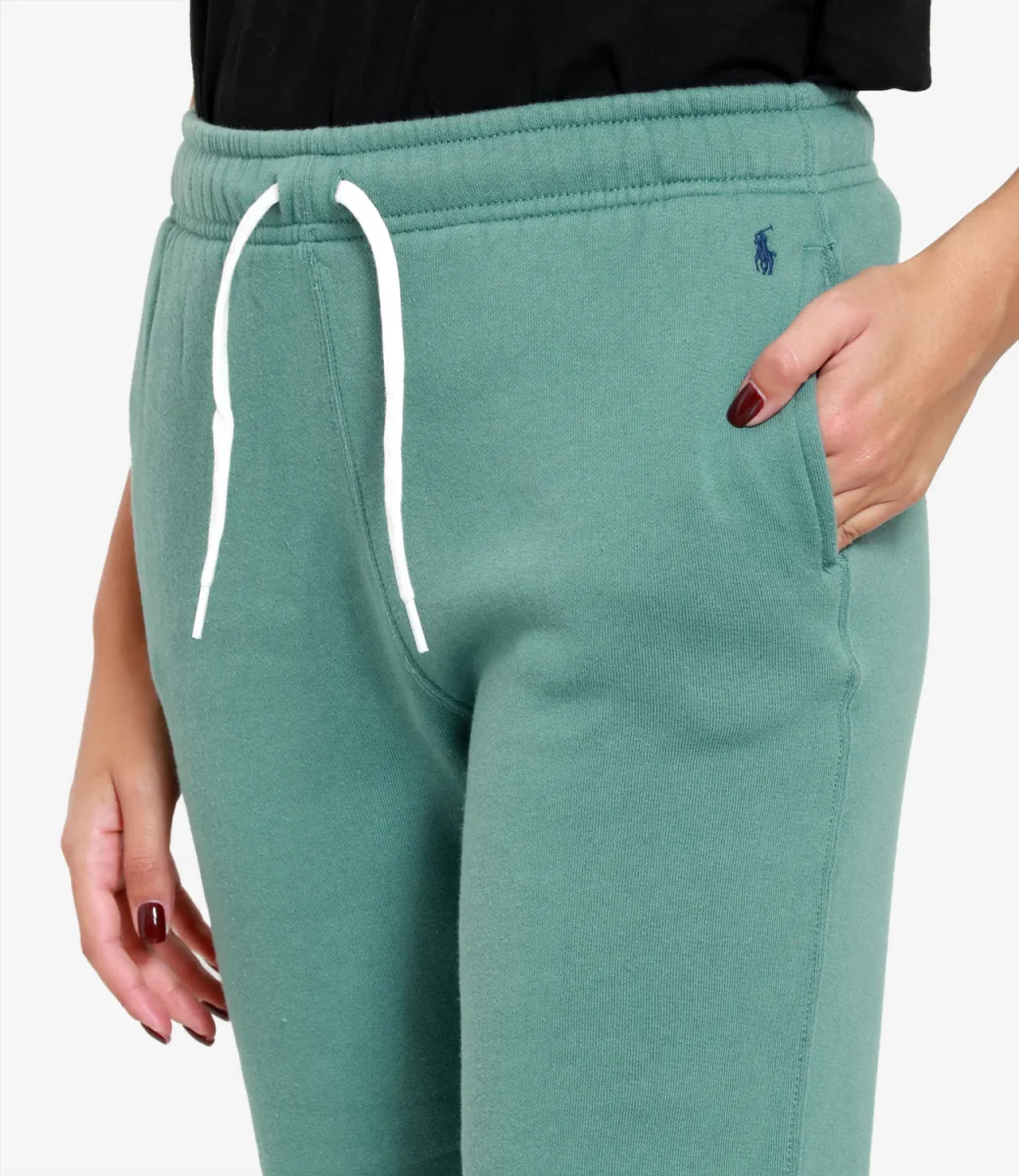 Pantalone Sportivo Polo Ralph Lauren in cotone verde con vita elastica e coulisse, logo, tasche, vita e polsini elastici.
