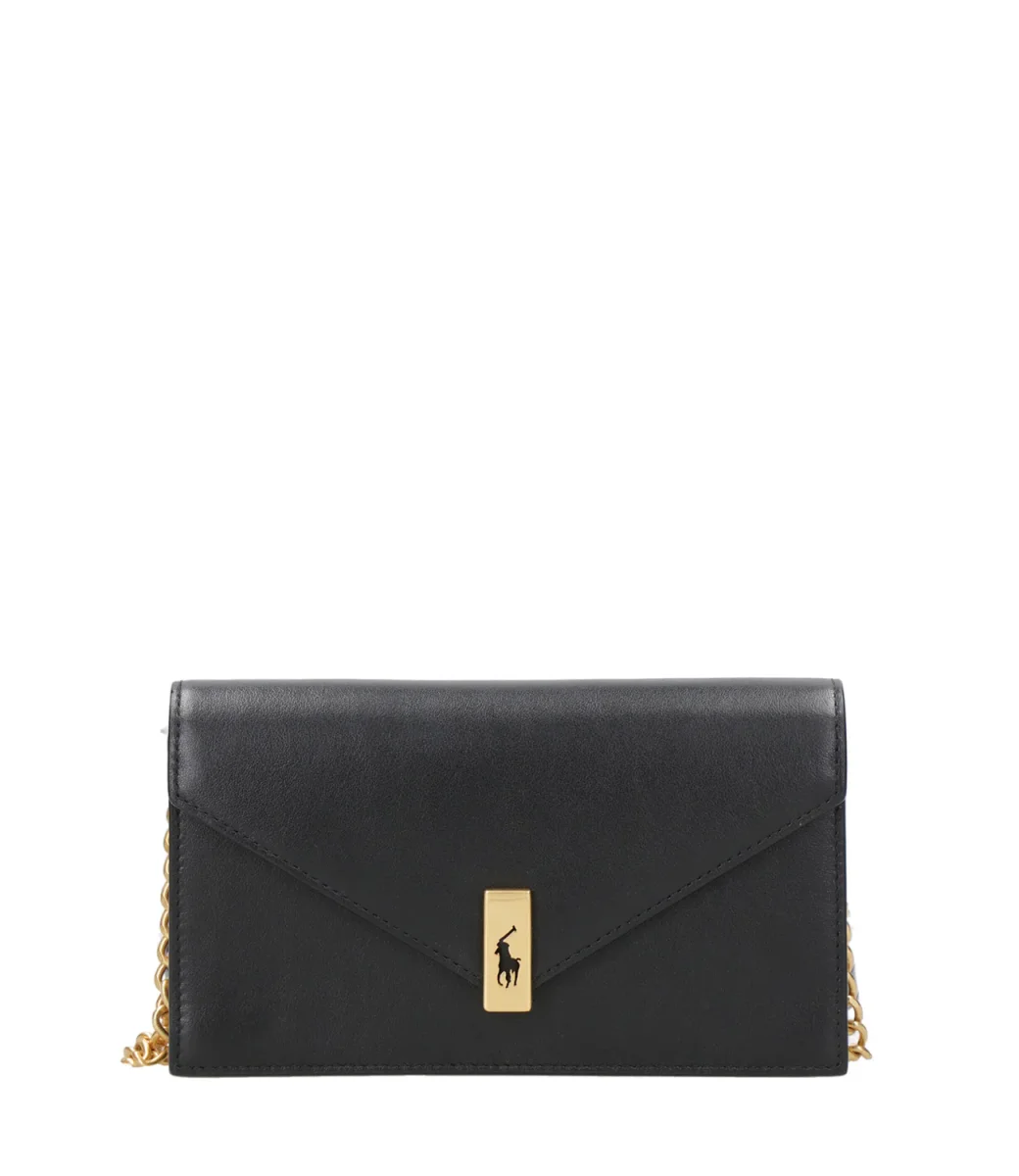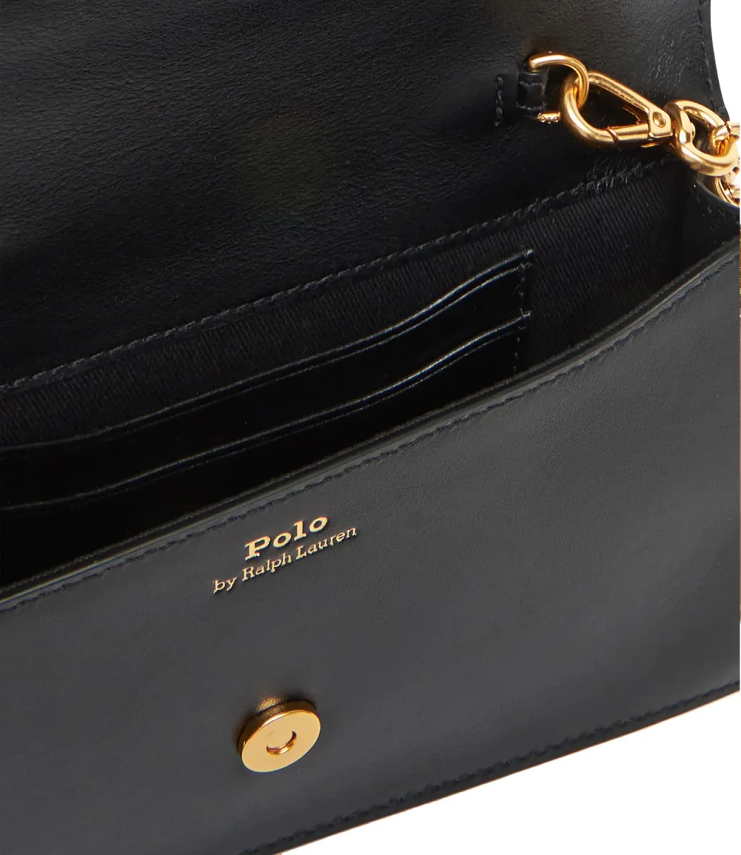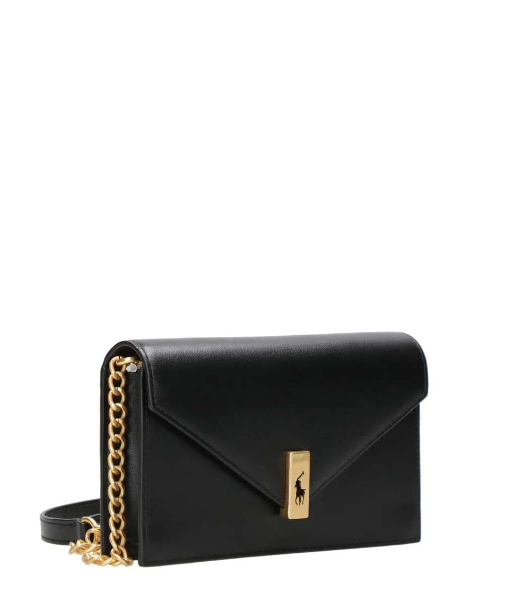 Borsa portafogli Polo Ralph Lauren Polo ID in pelle italiana con tracolla in catena metallica . Innovativo design compatto con chiusura con patta e placca in metallo Pony intagliata d’ispirazione vintage.