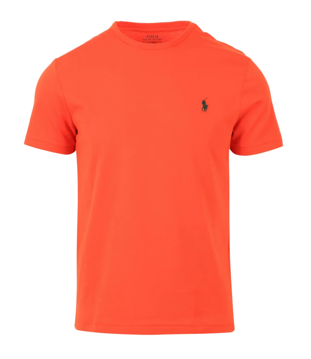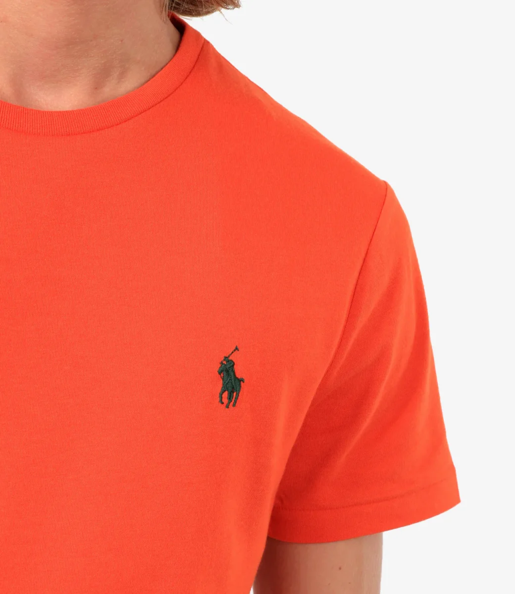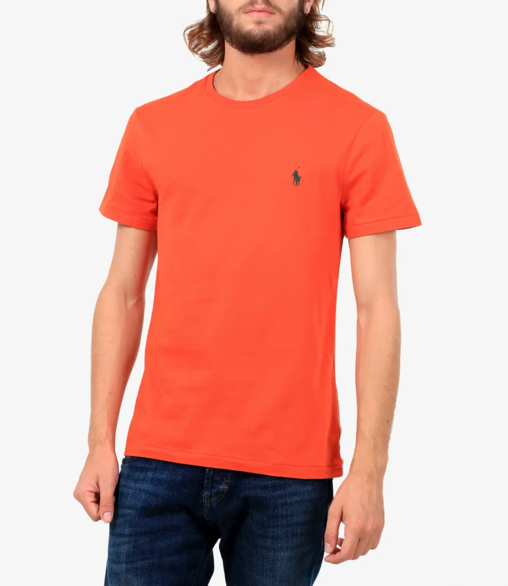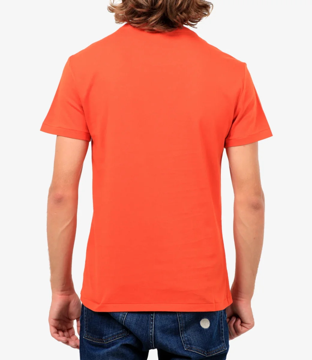 T-Shirt Polo Ralph Lauren in jersey di cotone arancio, precedentemente lavata per conferirle un aspetto autenticamente vissuto è un must have che diventerà uno dei modelli preferiti del guardaroba.