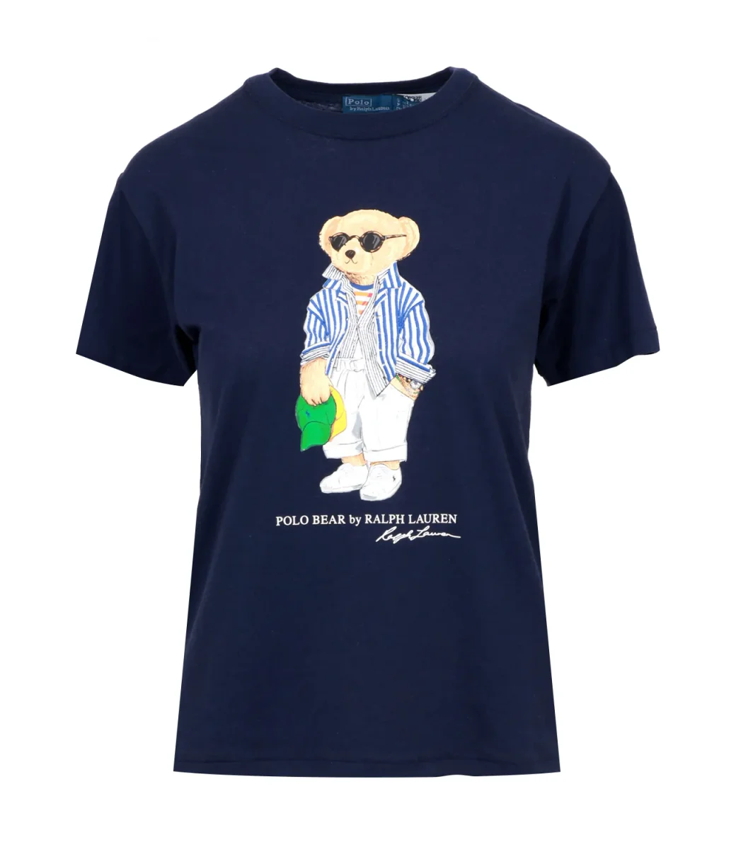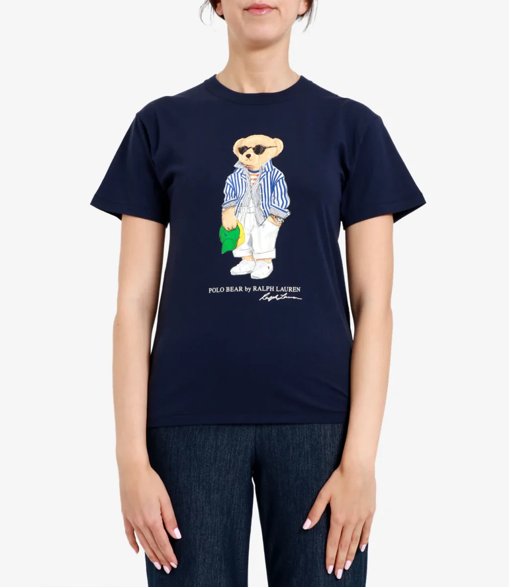 T-Shirt Polo Ralph Lauren in jersey di cotone, maxi stampa sul davanti “Polo Bear by Ralph Lauren” simbolo del brand