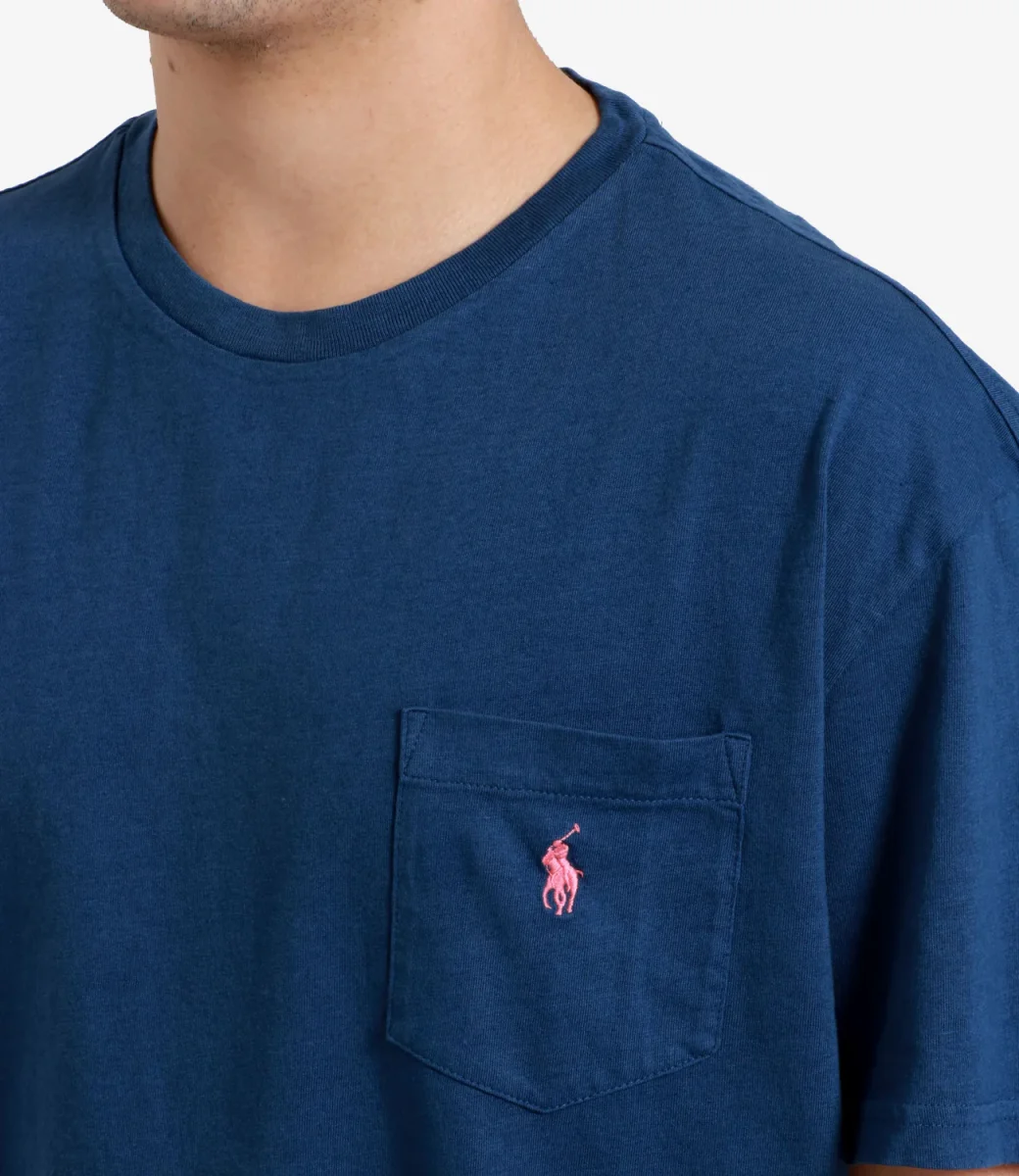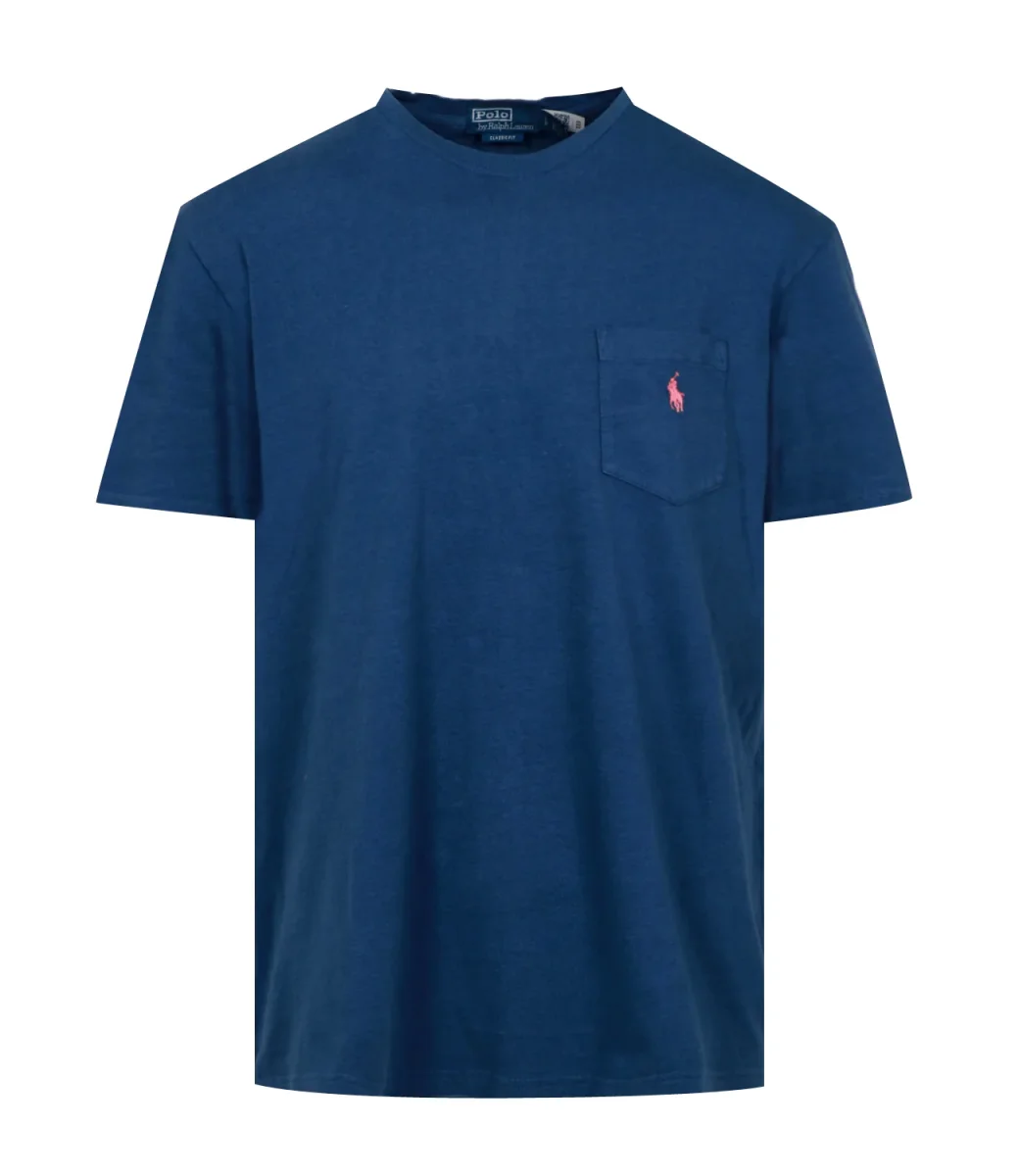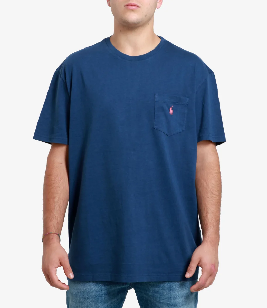 T-Shirt Polo Ralph Lauren riproposta per questa stagione in leggero jersey di cotone e lino, con taschina applicata sul davanti, girocollo, maniche corte.