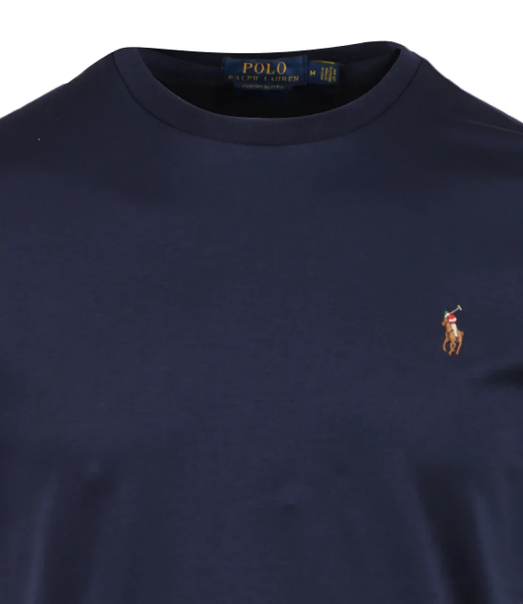 T-Shirt Polo Ralph Lauren in pregiato cotone interlock a girocollo e maniche corte con logo ricamato sulla parte sinistra del torace.