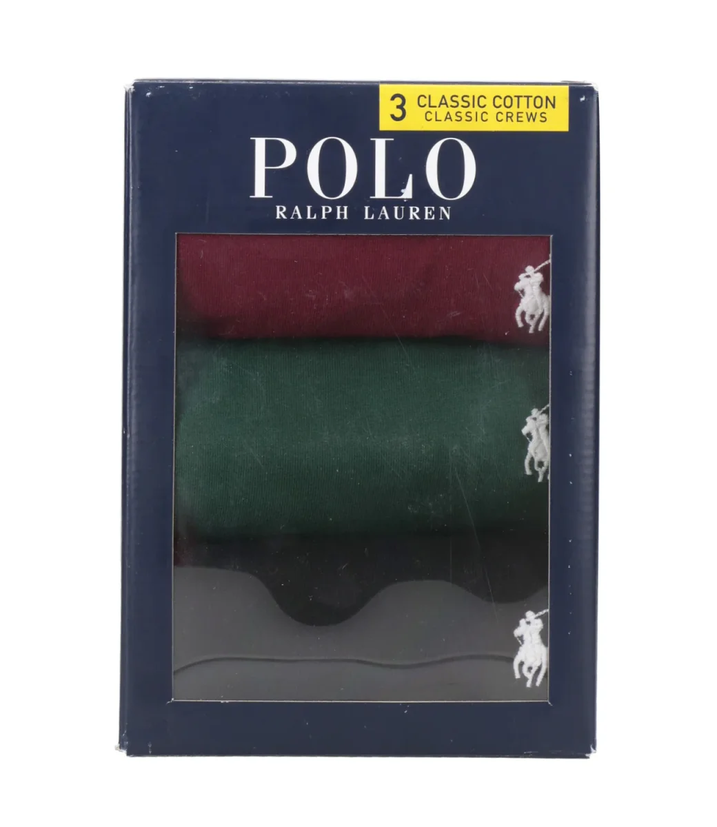 T-Shirt Polo Ralph Lauren in confezione con tre colori, modello a girocollo realizzata in morbido jersey di cotone traspirante, girocollo, maniche corte, iconico logo pony ricamato sul fondo lato sinistro.
