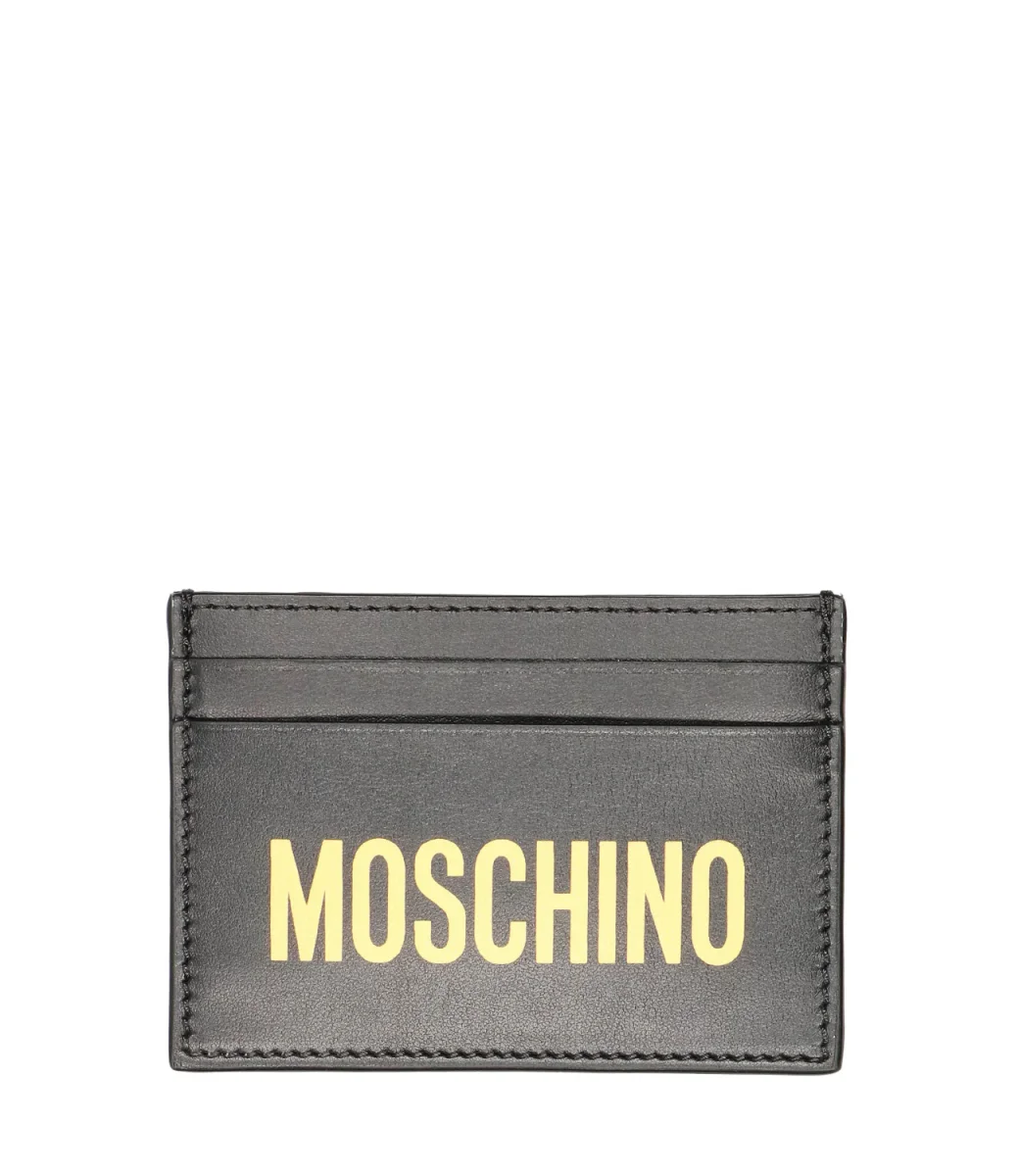 Portafogli Moschino in pelle nero impreziosito dal logo a contrasto in oro.