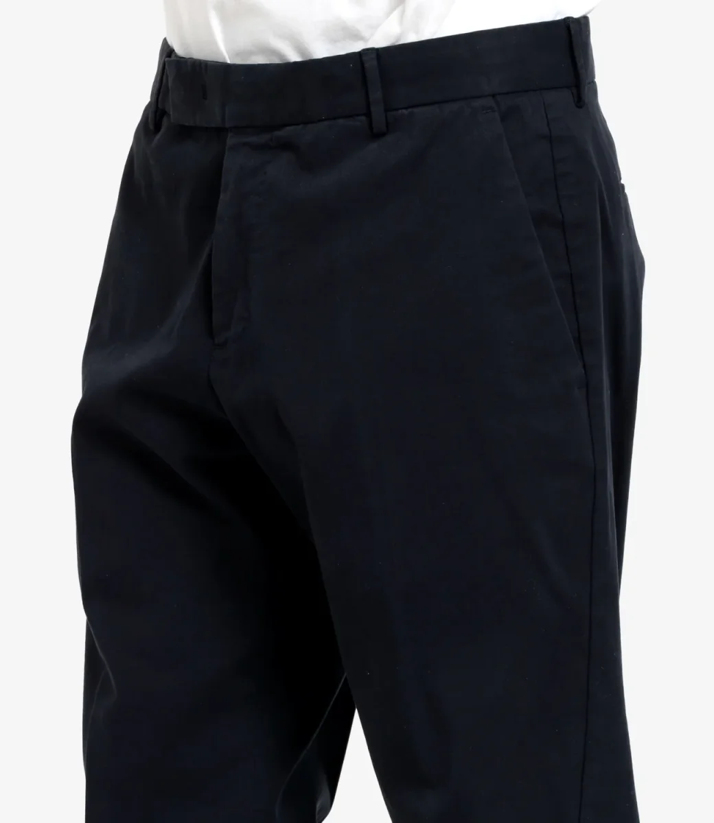 Pantalone PT Torino realizzato in cotone pesante. Vita regolare con passanti, chiusura con gancio coperto e zip con patta, piega stirata dal design sartoriale. tasche alla francese sul davanti e filetto sul retro.