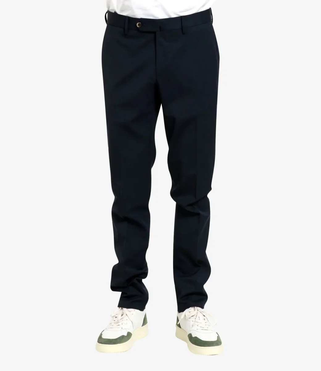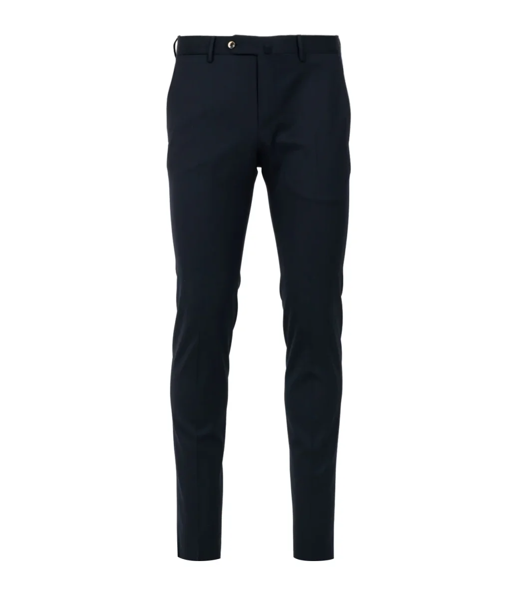 Pantalone PT Torino realizzato in fresco lana. Vita regolare con passanti, chiusura con bottone spostato e zip con patta, piega stirata dal design sartoriale. tasche alla francese sul davanti e filetto con bottone sul retro.