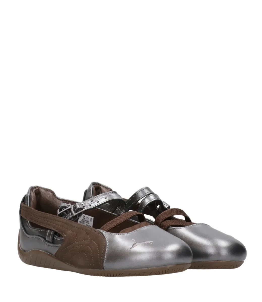 Ballerina Puma Speedcat Lux in pelle e dettagli in suede. Un design che reinterpreta l’iconica Speedcat di Puma con un tocco raffinato tutto al femminile.