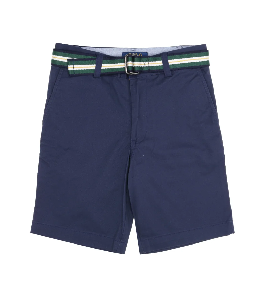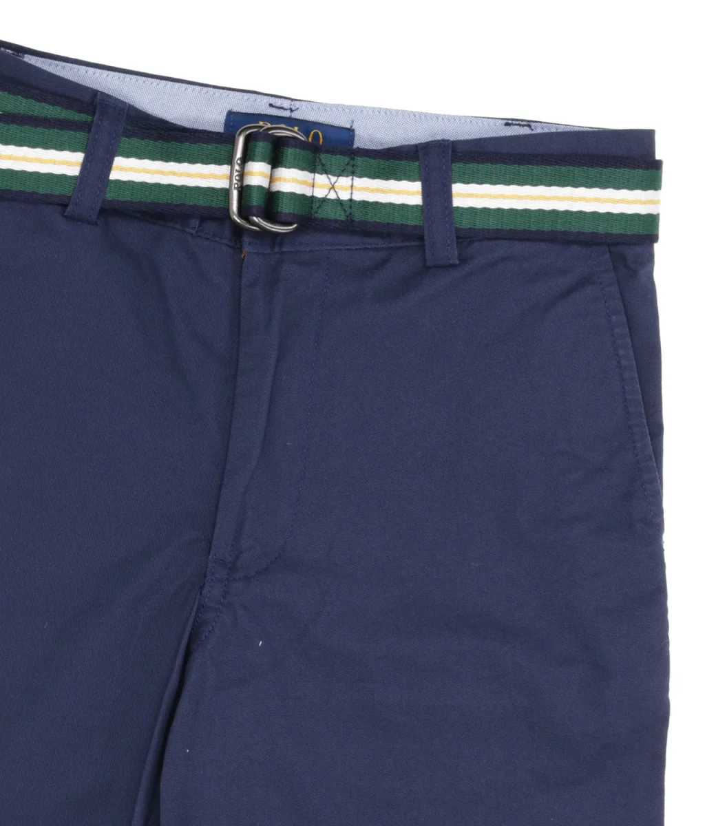 Bermuda Ralph Lauren Childrenswear in cotone blu navy, realizzati in tessuto Flex Abrasion di Ralph Lauren, che utilizza la tecnologia Purepress anti-grinze, con una maggiore resistenza all’abrasione e allo strappo.