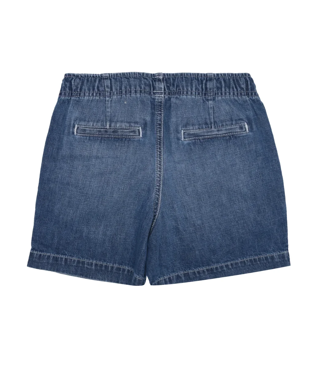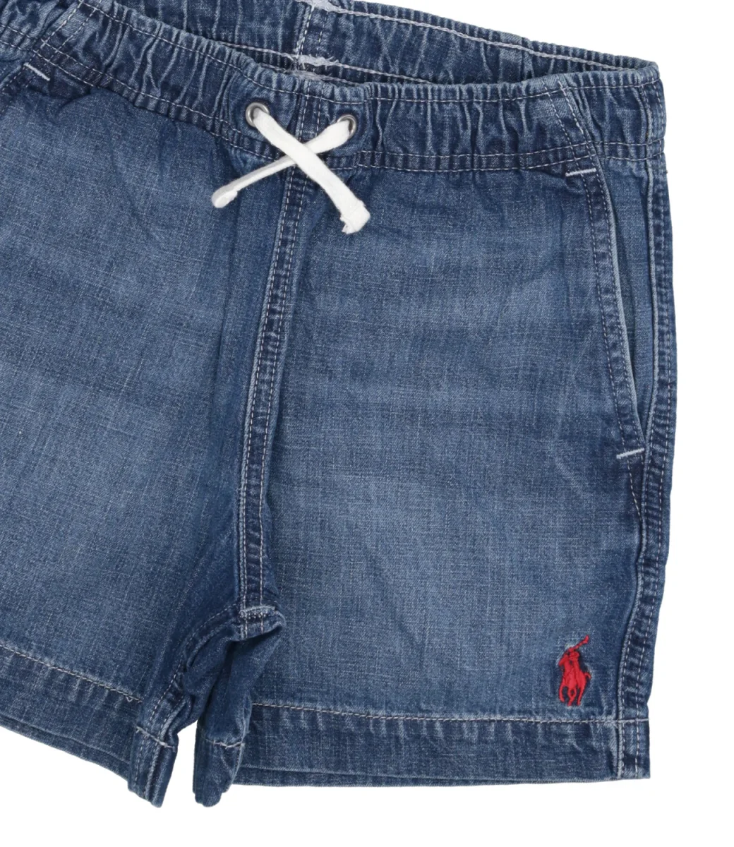 Bermuda Ralph Lauren Childrenswear. Questi leggeri short in denim tinto indaco si distinguono per la comodissima vita elastica con coulisse. Tasche laterali america, lunghezza a mezza gamba con orlo dritto, tasche posteriori a filo. Esclusivo pony ricamato sull’orlo sinistro. L’abbigliamento per questa fascia di età è adatto alla corporatura più asciutta di un bambino che ha imparato a camminare.