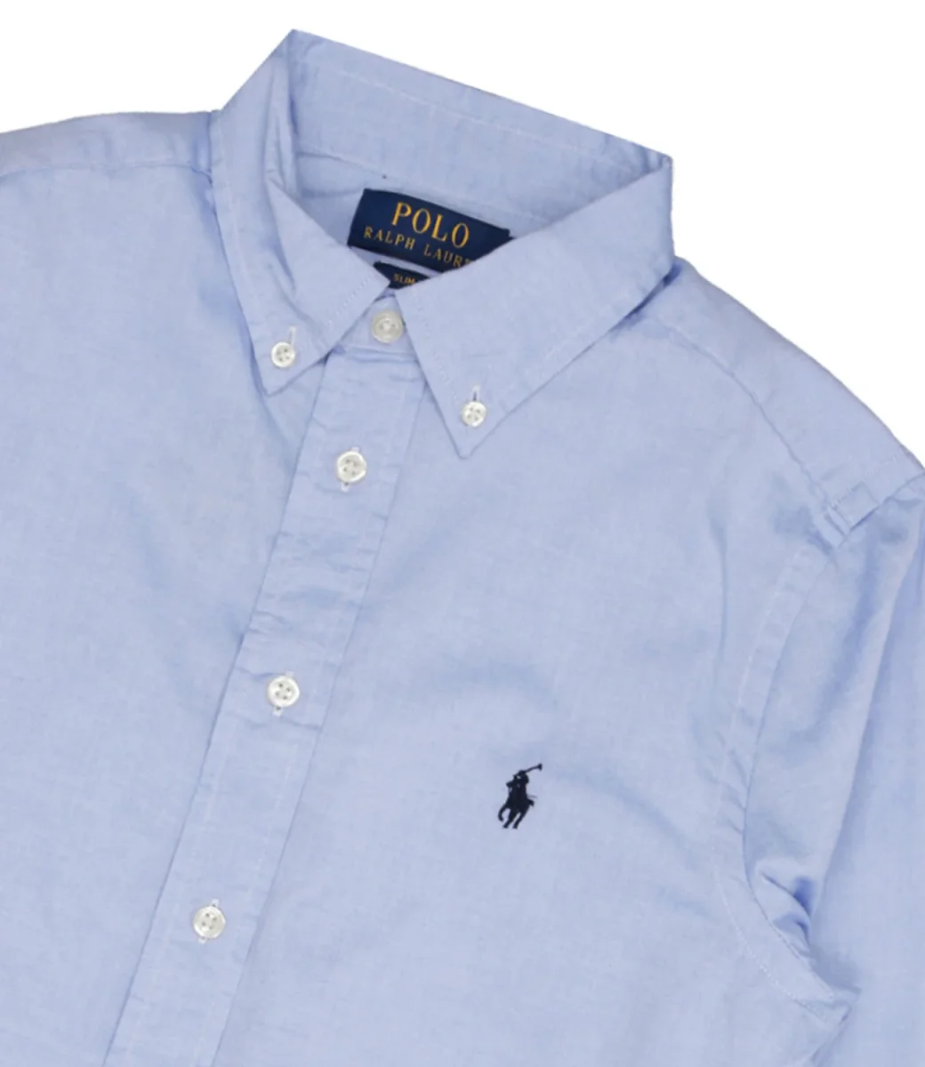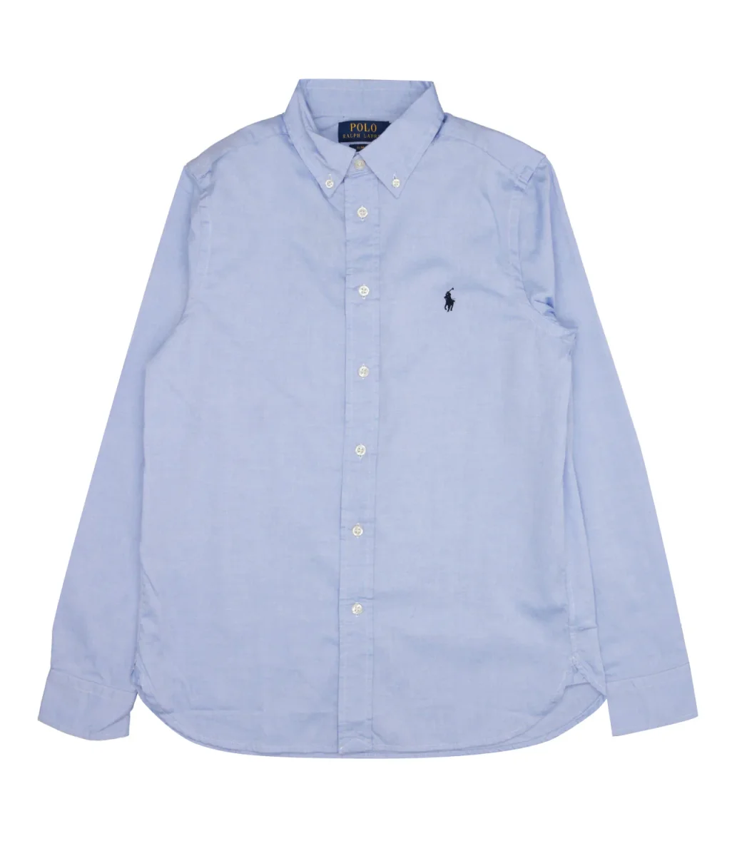 Camicia Ralph Lauren Childrenswear in cotone, collo button-down, chiusura frontale integrale con bottoni, maniche lunghe con polsini e bottoni, carré posteriore con pieghe a cannoncino.