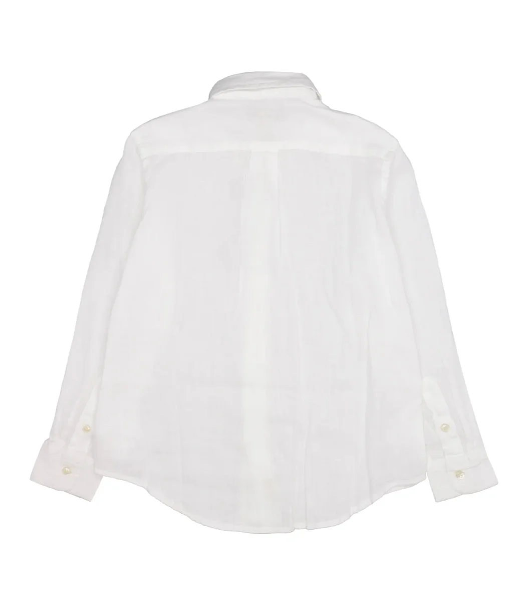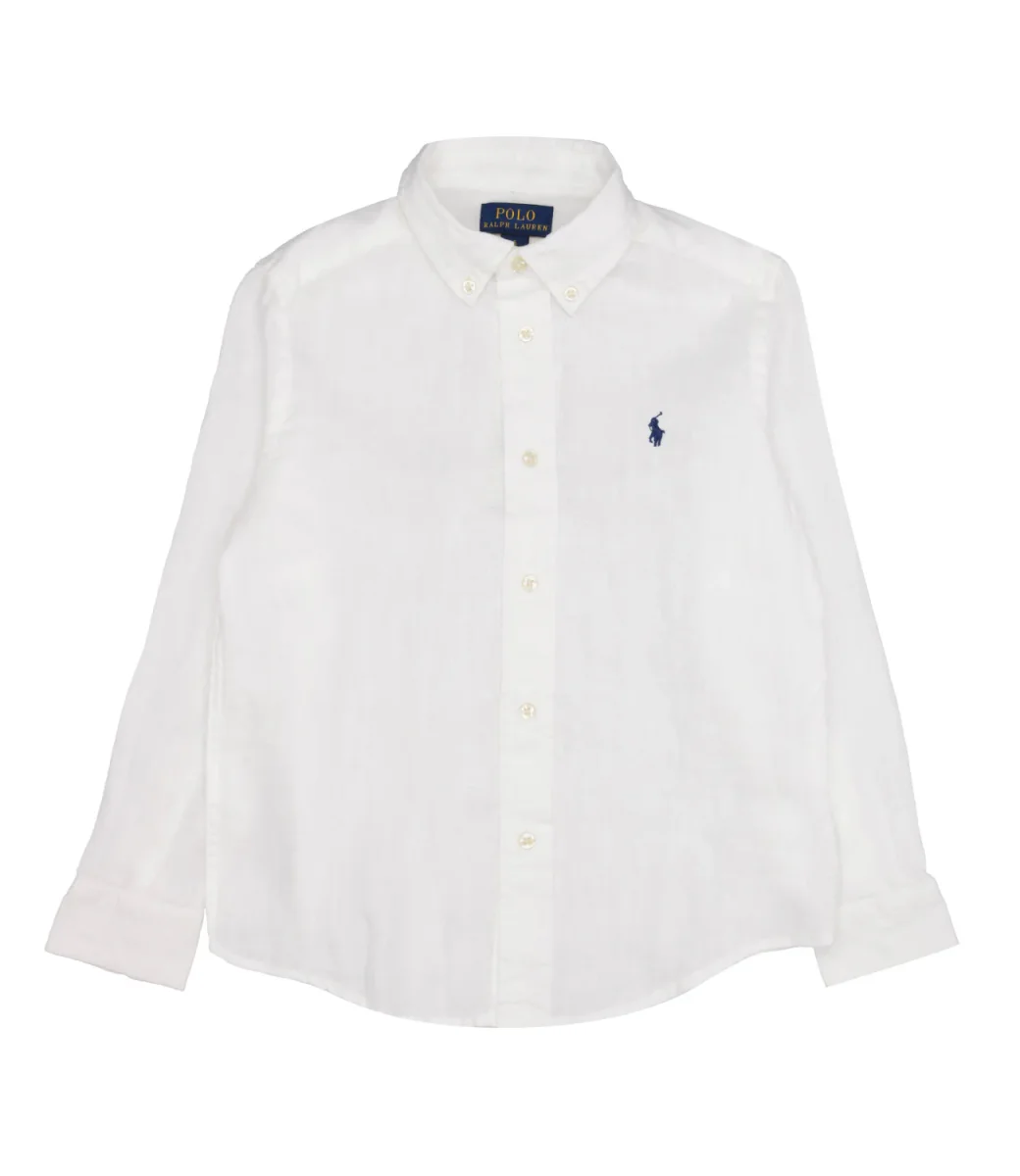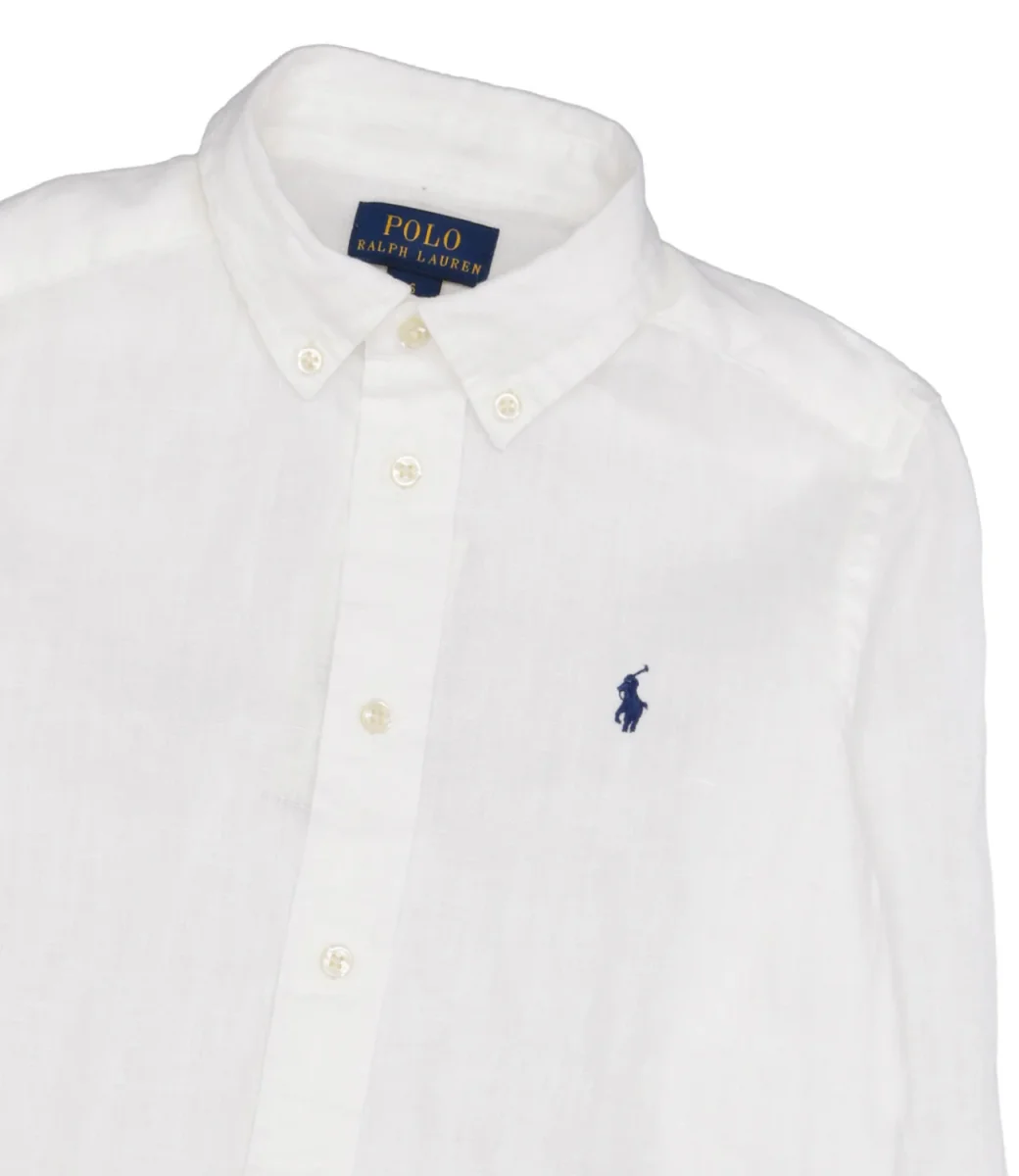 Camicia Ralph Lauren Childrenswear in lino, collo button-down, chiusura frontale integrale con bottoni, maniche lunghe con polsini e bottoni, carré posteriore con pieghe a cannoncino.
