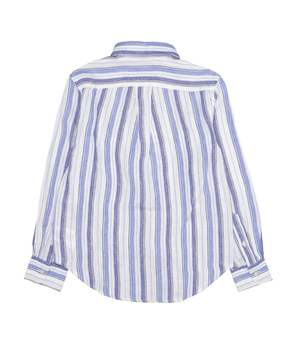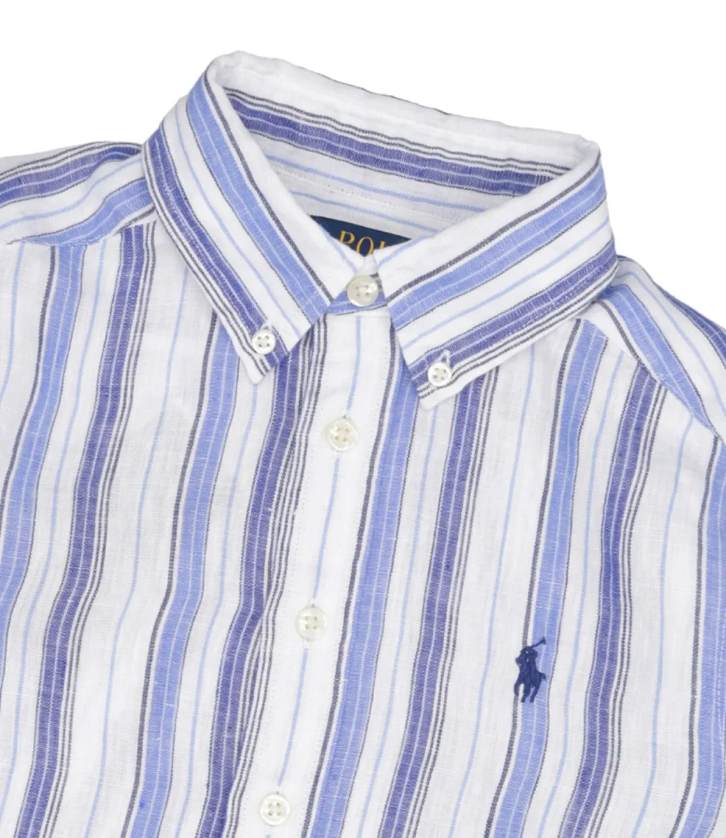 Camicia in lino leggero con l’iconico pony ricamato sul lato sinistro del torace.