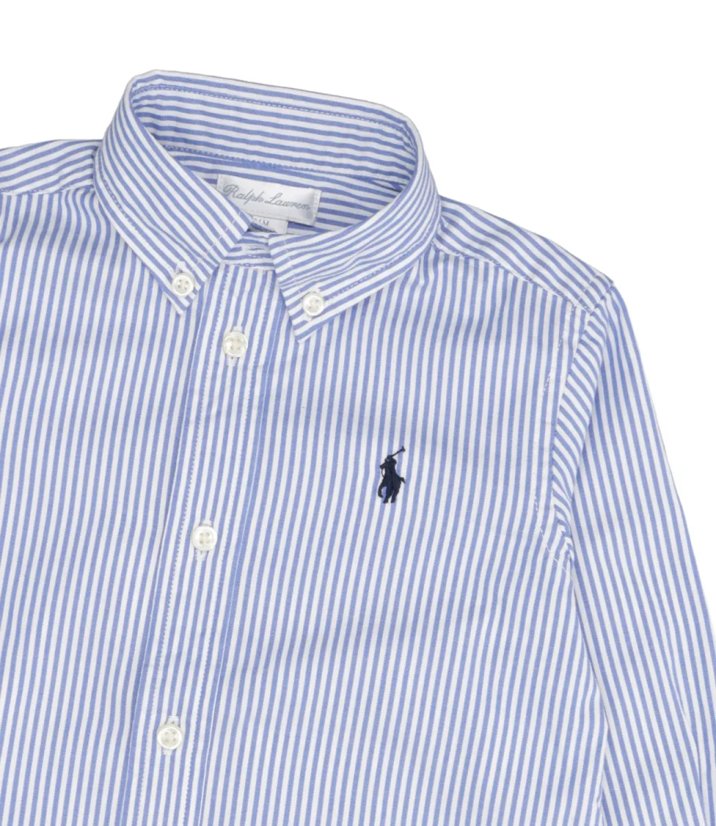 Camicia Ralph Lauren Childrenswear in cotone con motivo a righe, design iconico della linea Oxford pin point rivisitata nella fantasia.