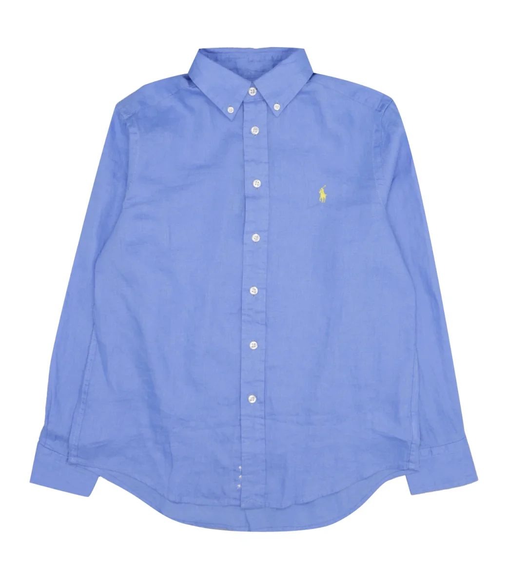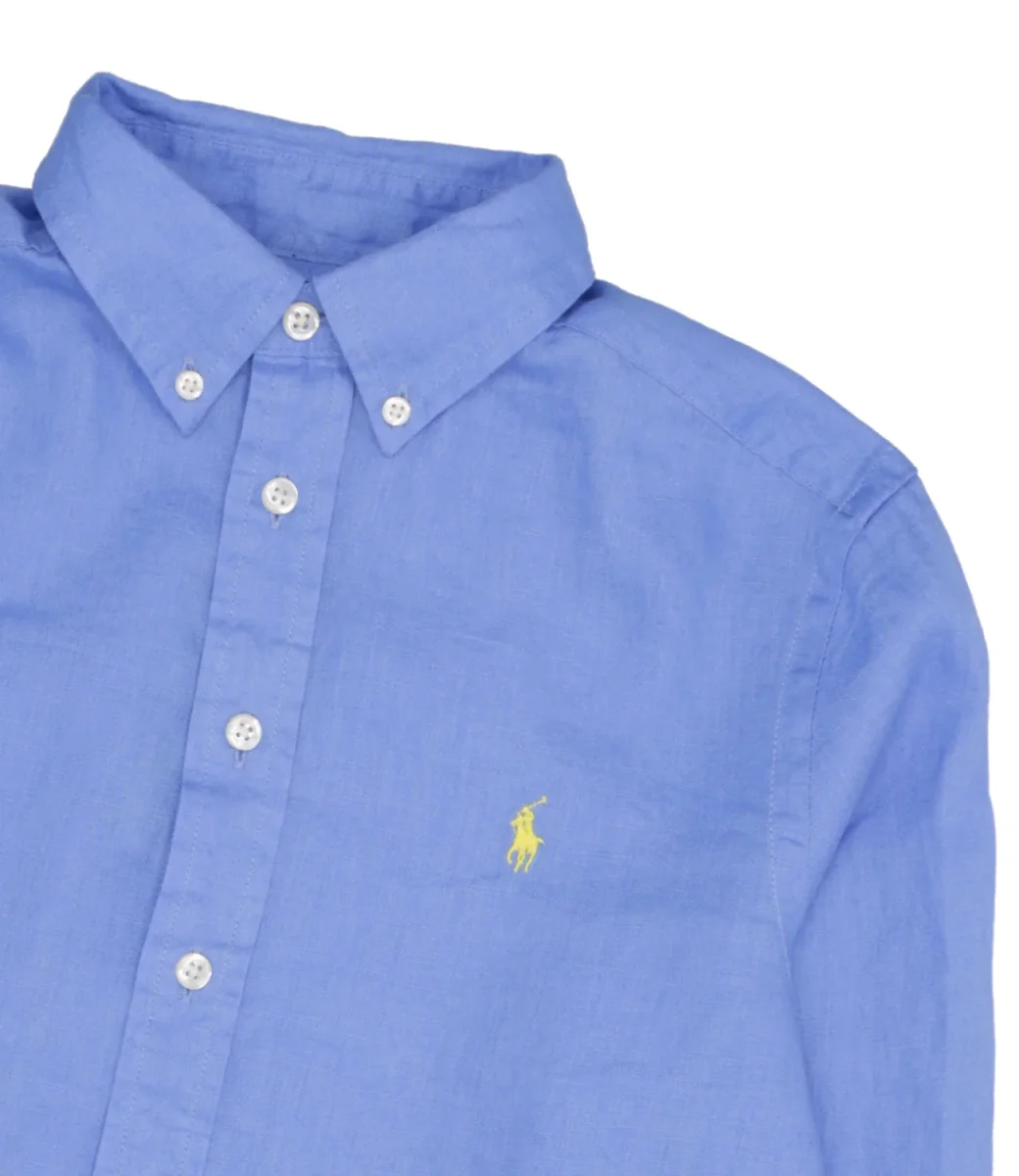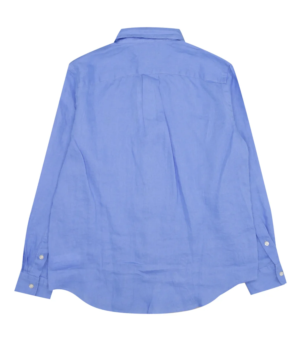 Camicia in lino leggero con l’iconico pony ricamato sul lato sinistro del torace.