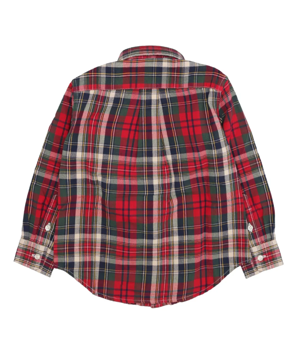 Camicia Ralph Lauren Childrenswear con fantasia scozzese sui toni del rosso e verde in oxford di cotone lavato e spazzolato per aumentarne la morbidezza.