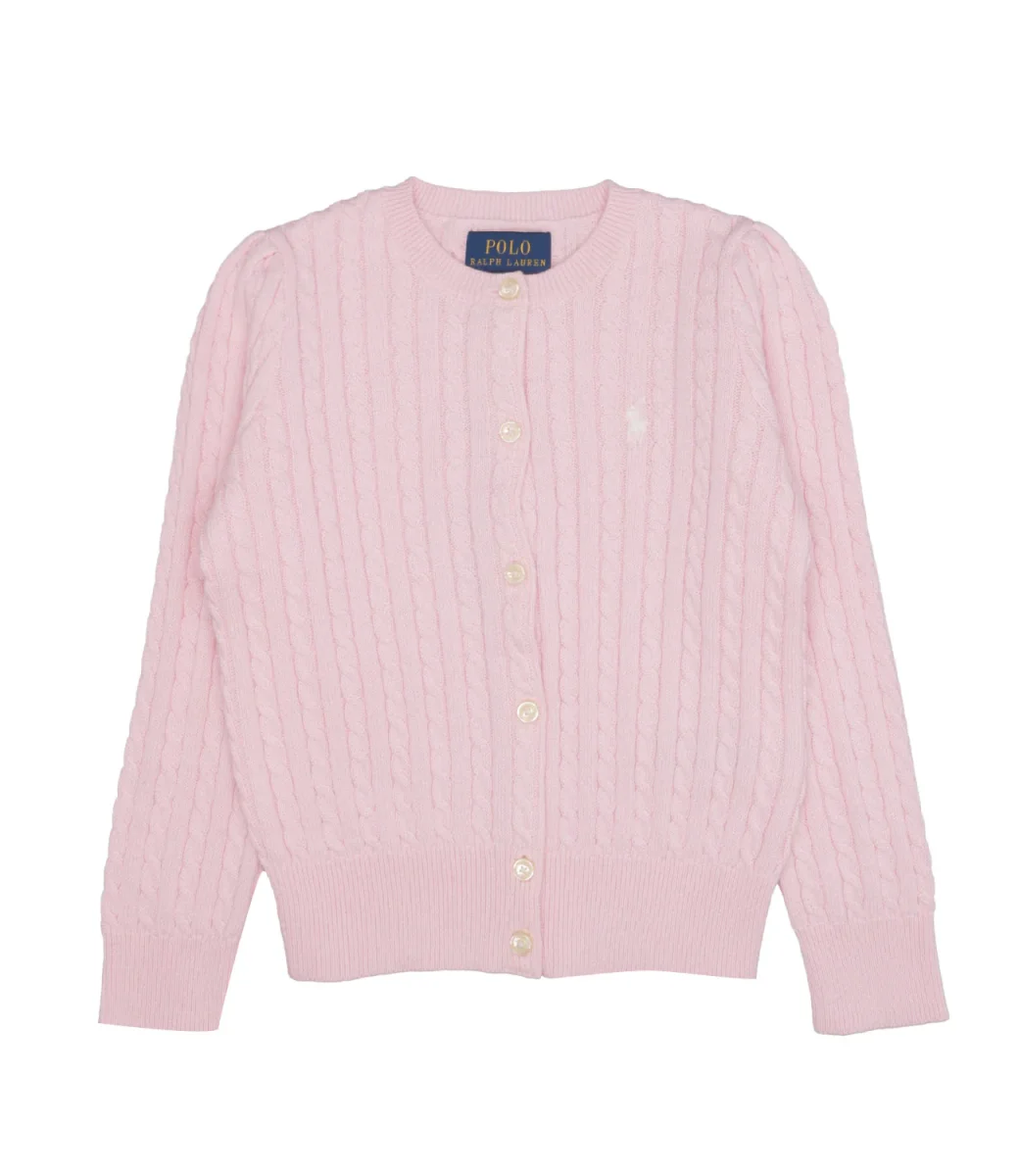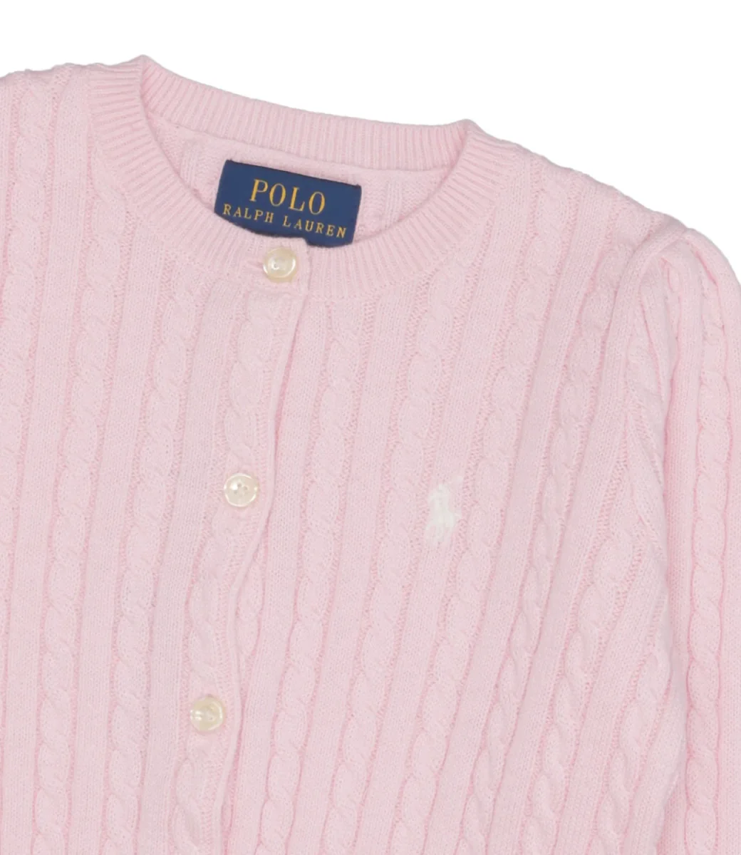 Cardigan Ralph Lauren Childrenswear in cotone pettinato di medio peso con maglia a trecce all over, girocollo e cannoncino con bottoni. Maniche lunghe, polsini e orlo a coste, iconico pony ricamato sul lato sinistro del petto. Morbido e versatile, ideale in ogni stagione.