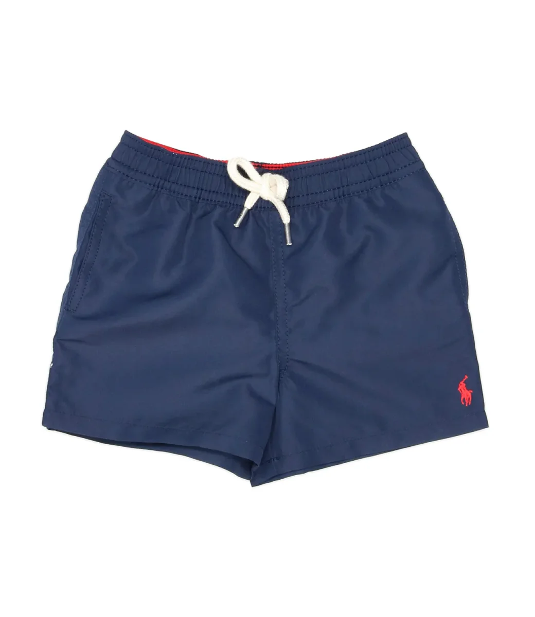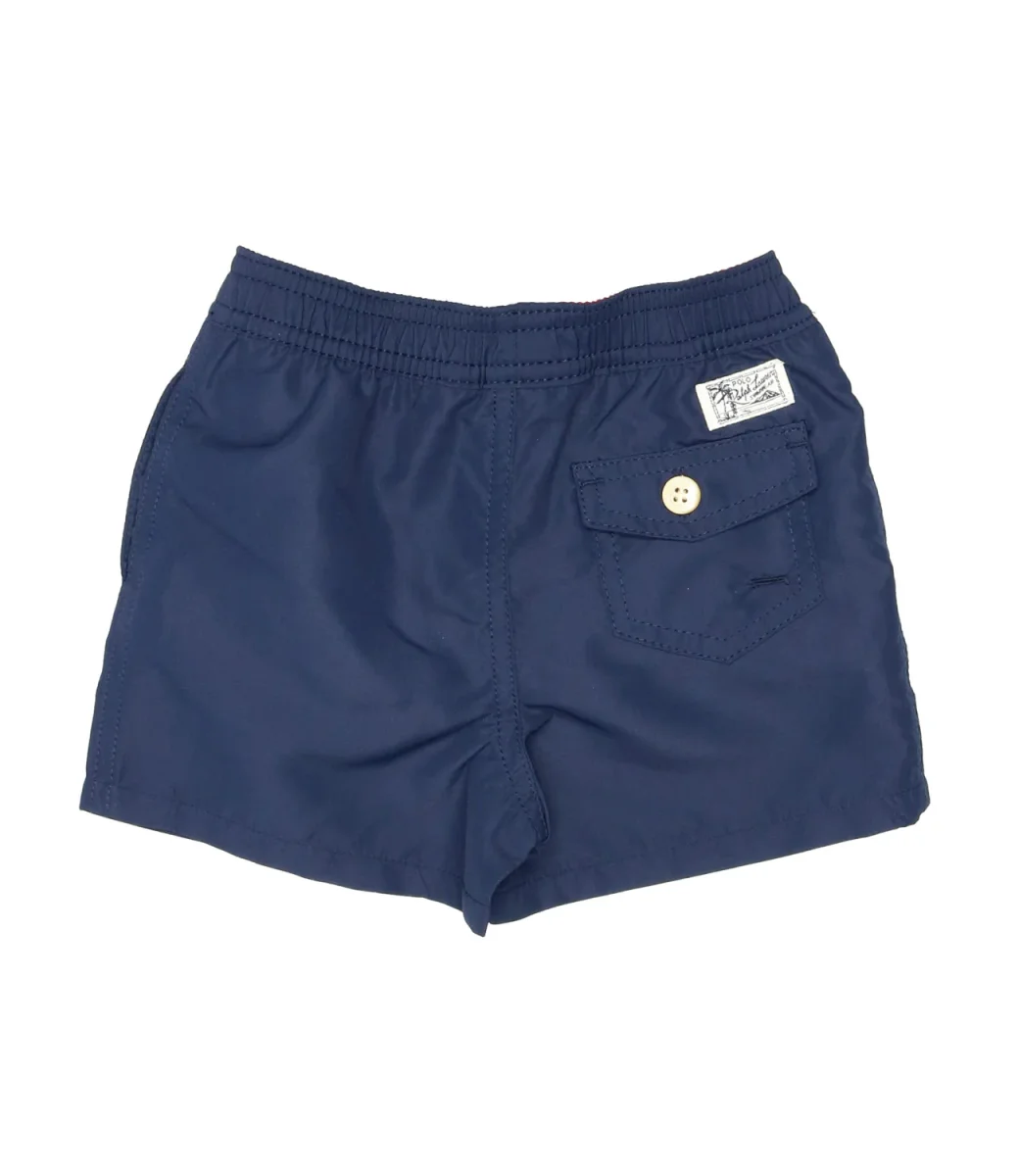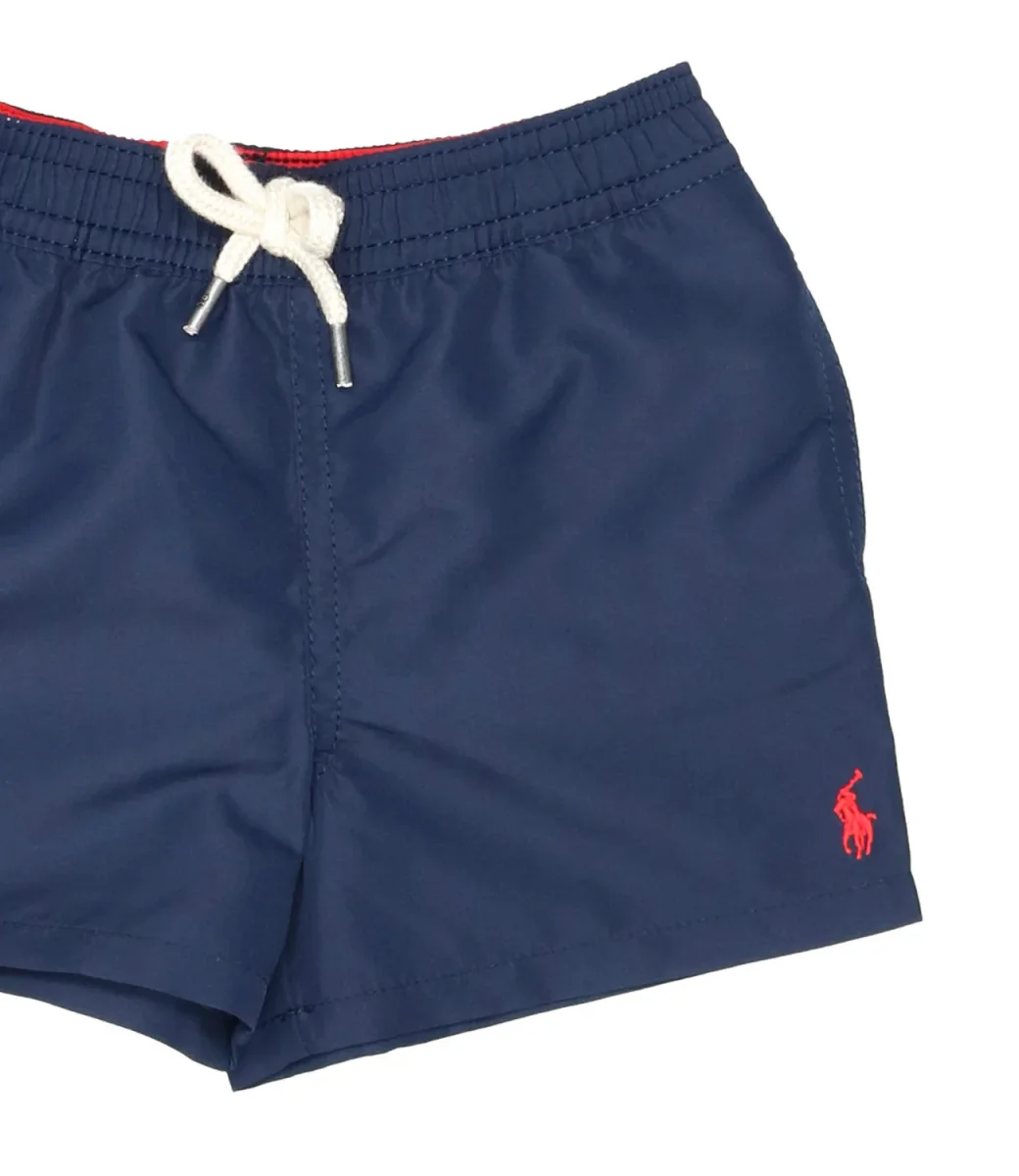 Costume boxer Ralph Lauren Childrenswear Traveler in nylon blu navy foderato è rifinito con il caratteristico pony ricamato.