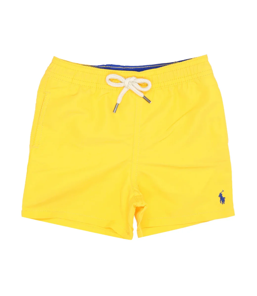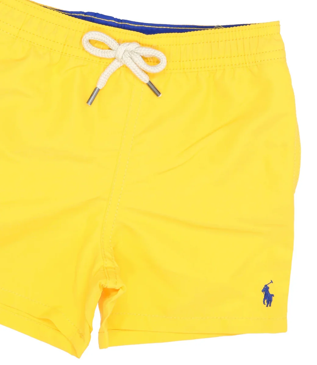Costume boxer Ralph Lauren Childrenswear Traveler in nylon giallo foderato è rifinito con il caratteristico pony ricamato.