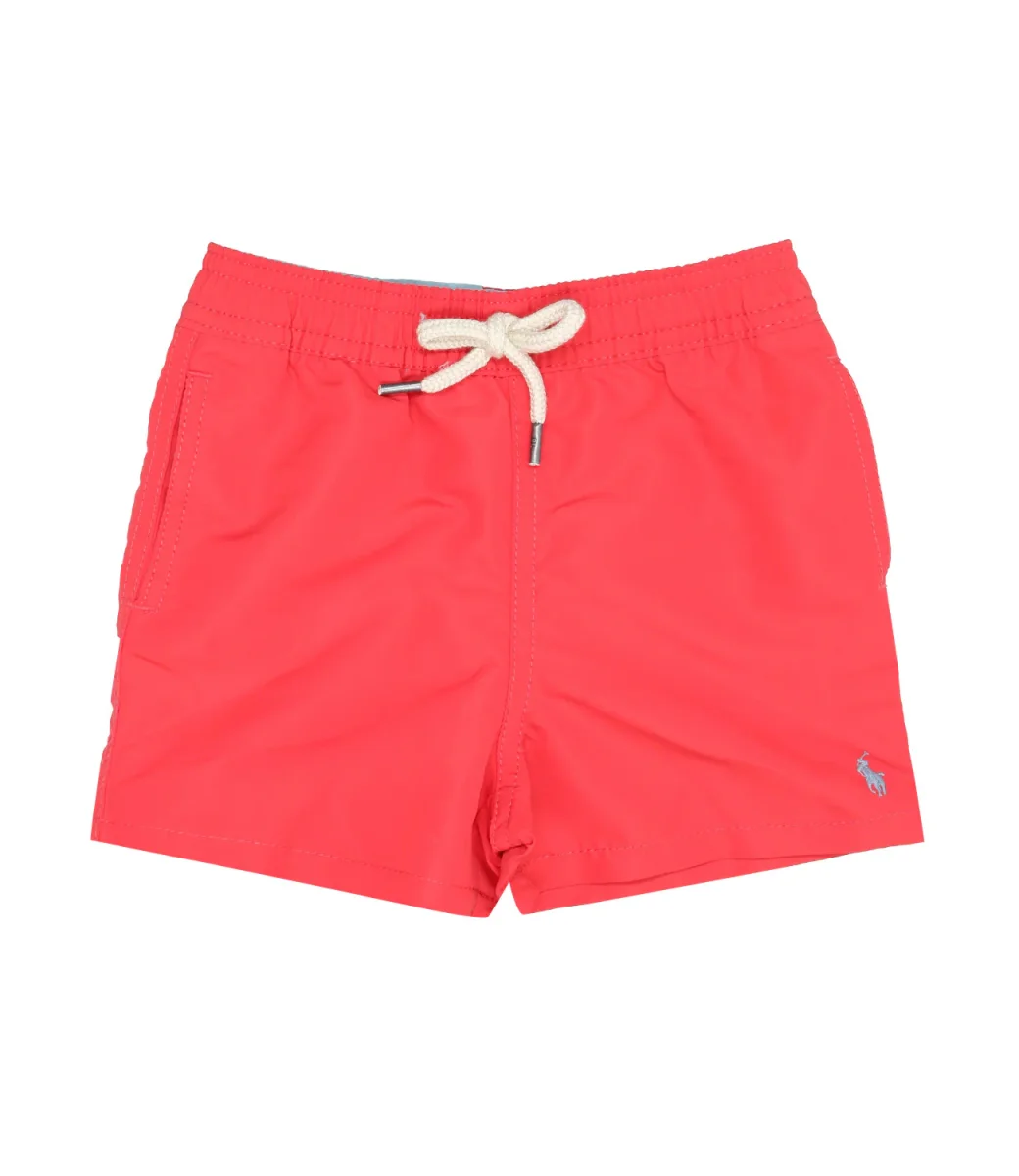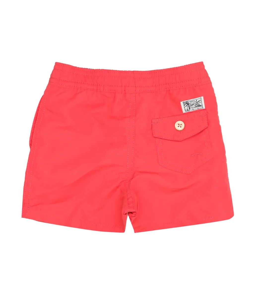Costume boxer Ralph Lauren Childrenswear Traveler in nylon rosso foderato è rifinito con il caratteristico pony ricamato.